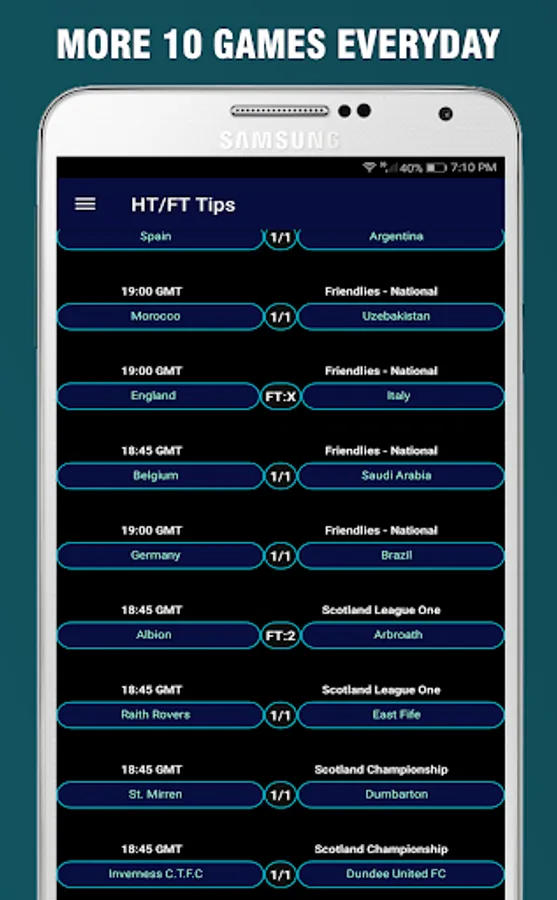 HT/FT tips is very important like bet prediction tips and all of them you can reach in app. HT/FT 101% FIXED are very hard also some people say fixed matches ht ft Ht Ft, 100 like bet free tips.We can not say there is no fixed matches tips arround. Someones say that we know fixed matches tips but we can not say this. We are good analysers. Best betting tips or betting win tips or fixed match program forget them. Make a new experience.You can compare tips and bets in app and you can also take fixed tips.Bet tips football are very valuable and most of them can be mistake for some people.