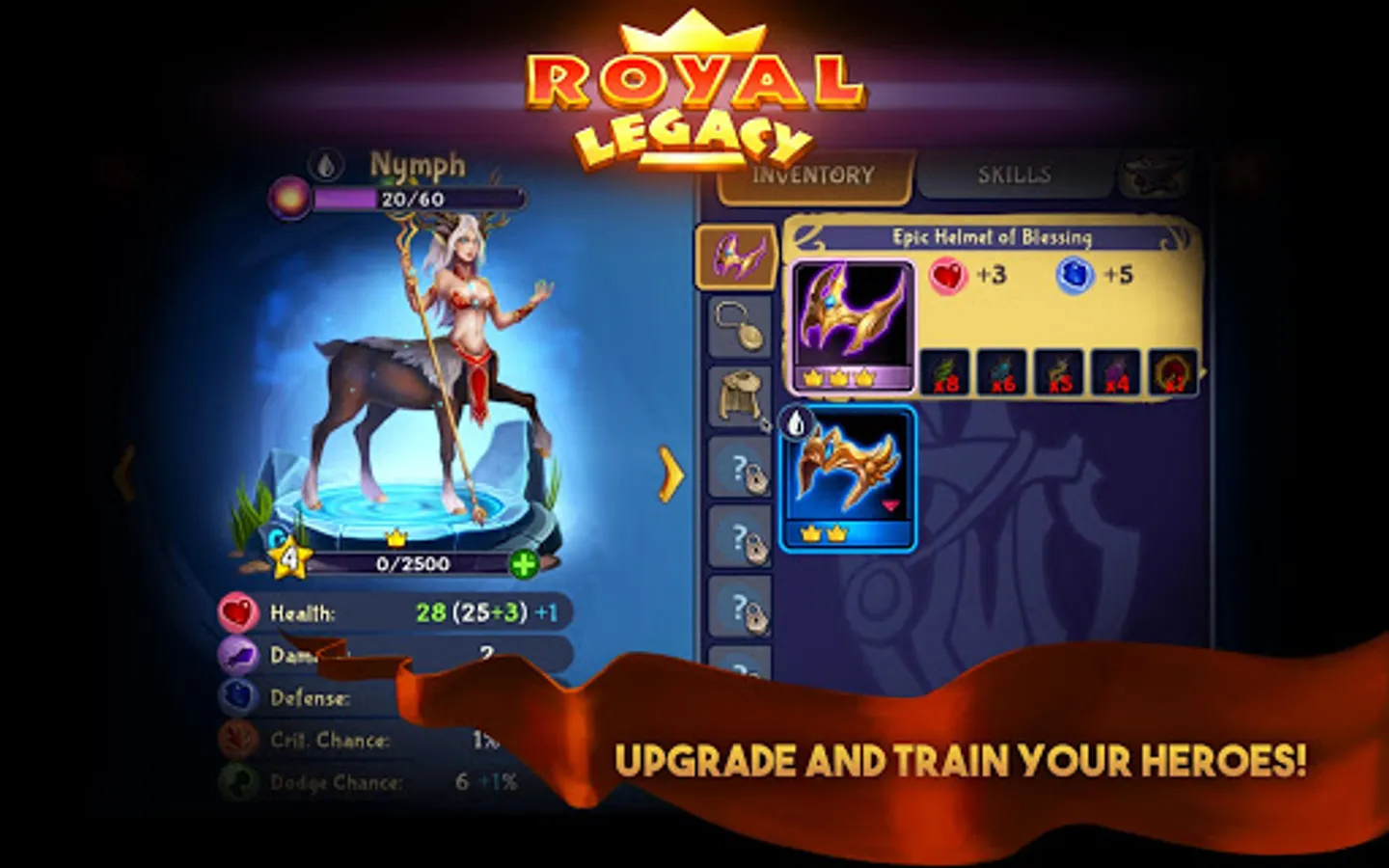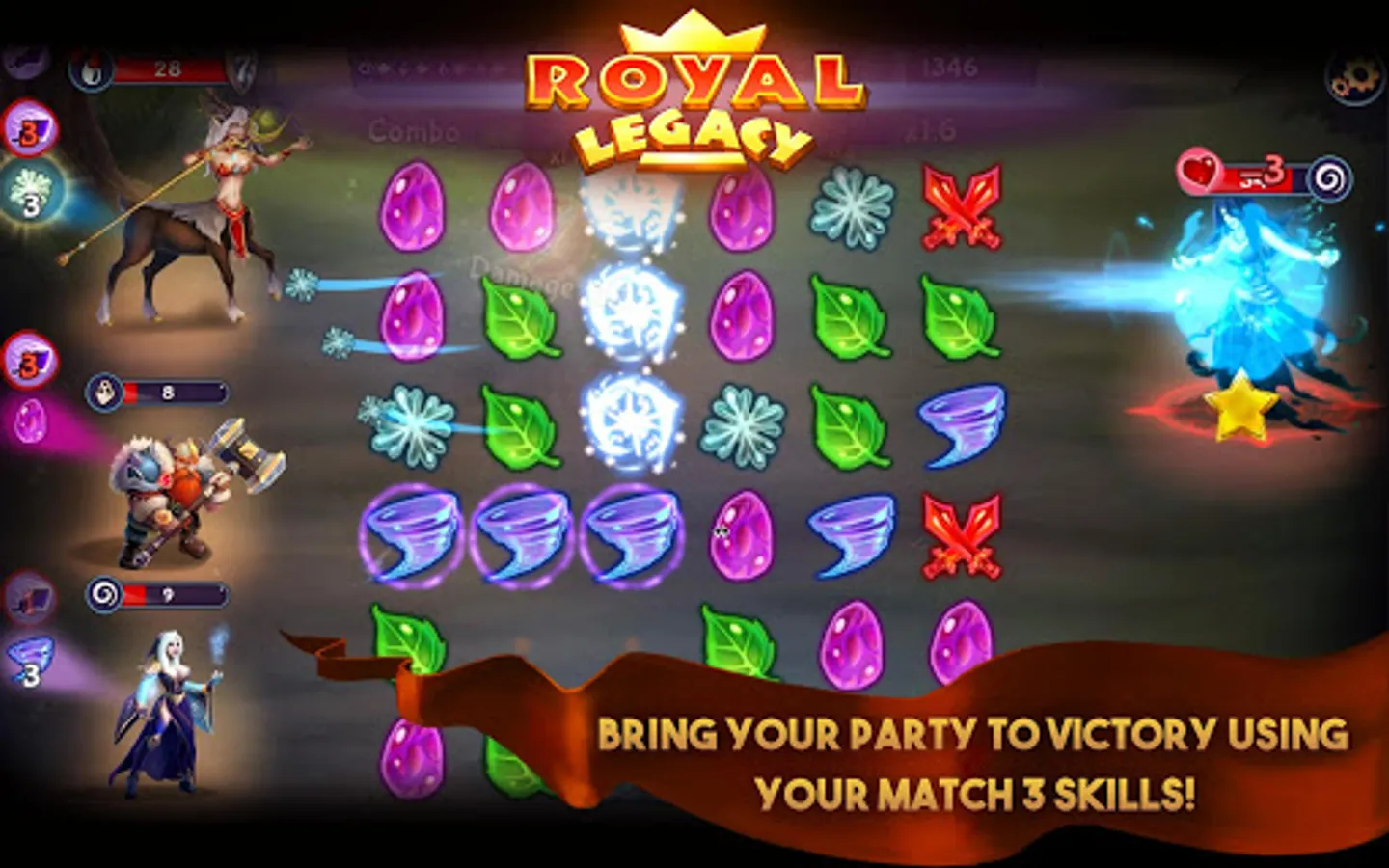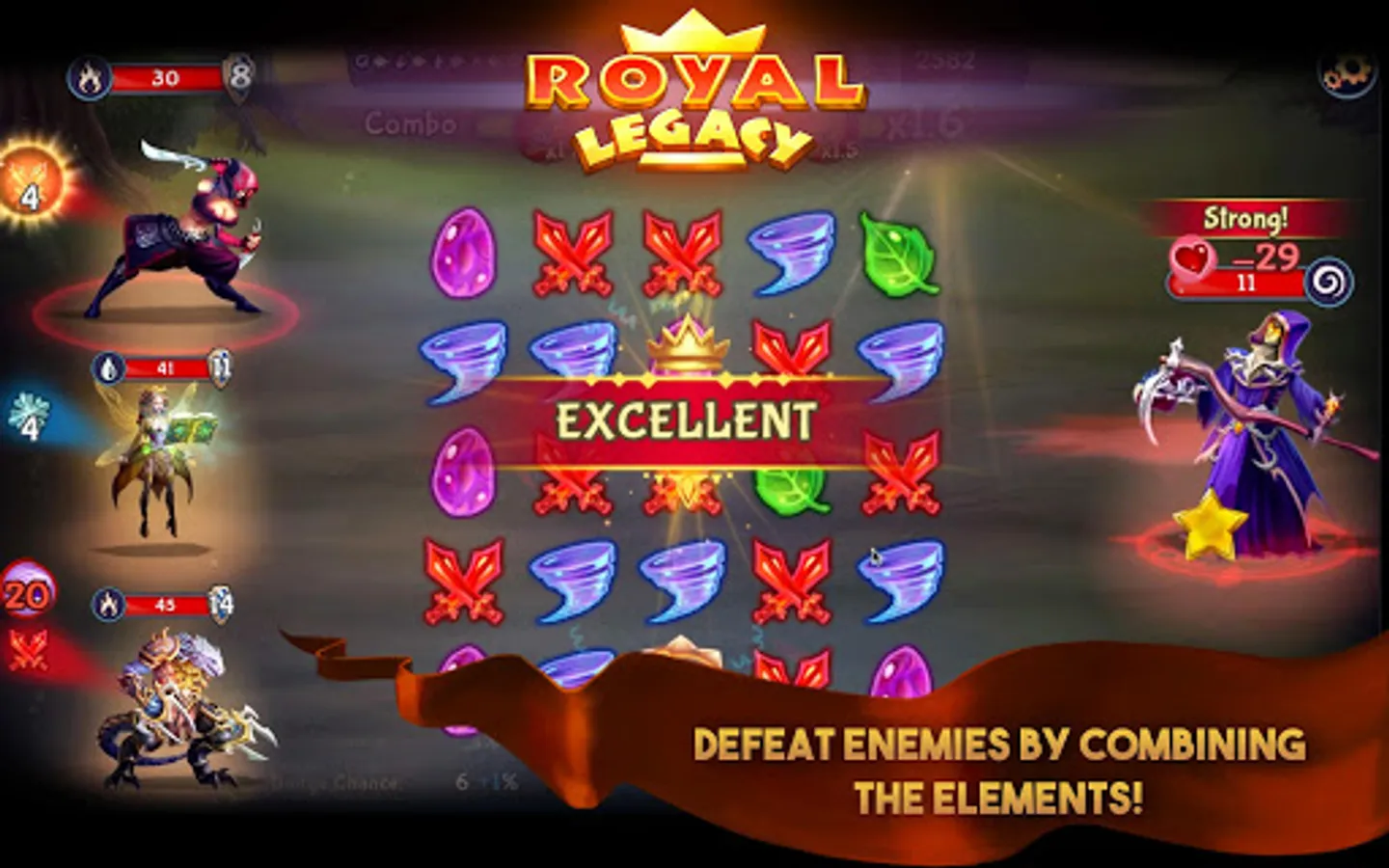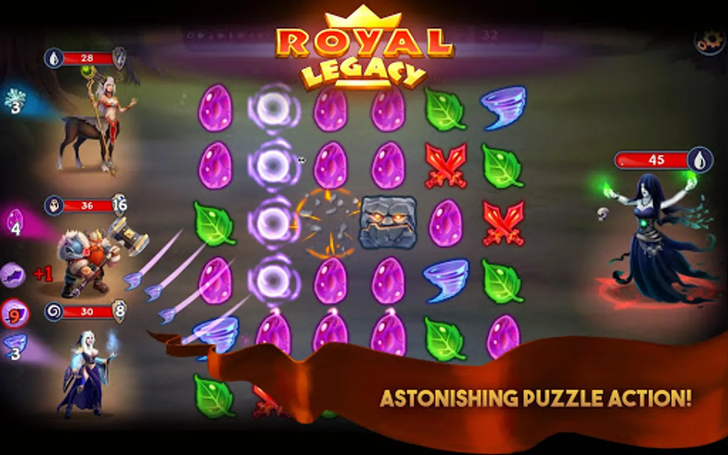 Royal Legacy is a free-to-play match-3 puzzle game with RPG features. Gameplay mixes RPG gameplay with strategy elements. The kingdom of Kadia is in danger and monster hordes have conquered the land. A Young Prince is the hero who can free the kingdom from this evil power. The Player can switch between different heroes, each with unique abilities.