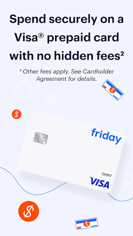 • Get digital access to your Friday Card in minutes and start spending anywhere that accepts Visa debit cards.