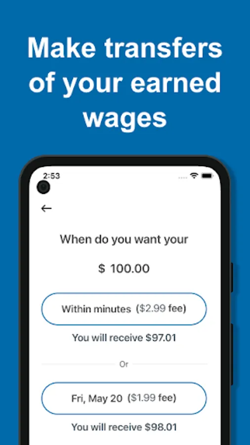 ● Access your available balance when you need it. Transfer a portion of your earnings to an eligible bank account, debit card, prepaid card, or pay card.