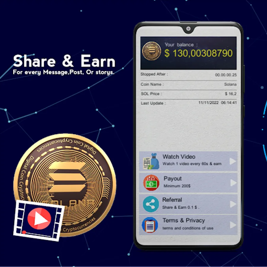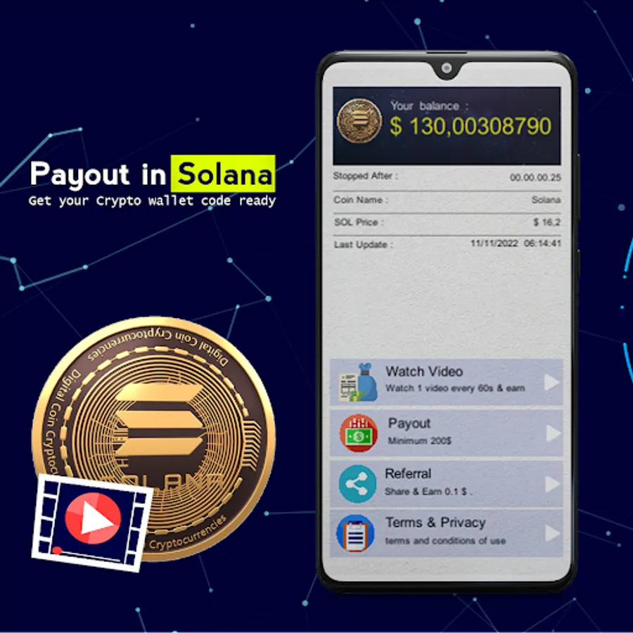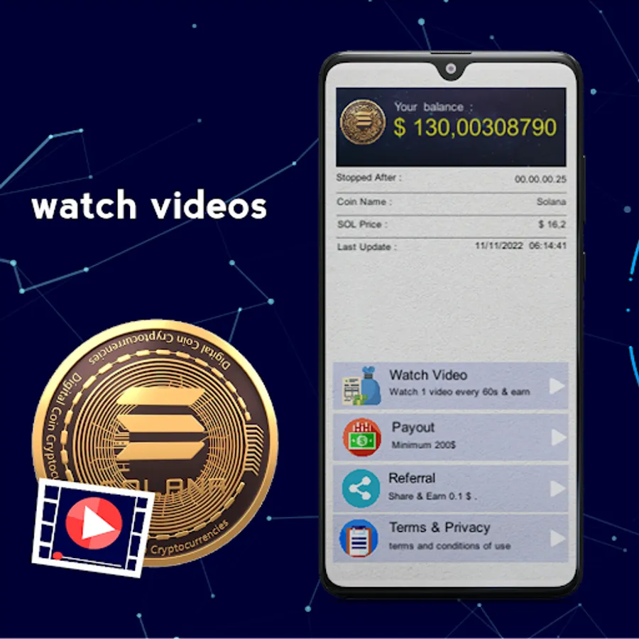 Just Watch the videos and earn Solana (SOL), And Withdraw to your crypto wallet .