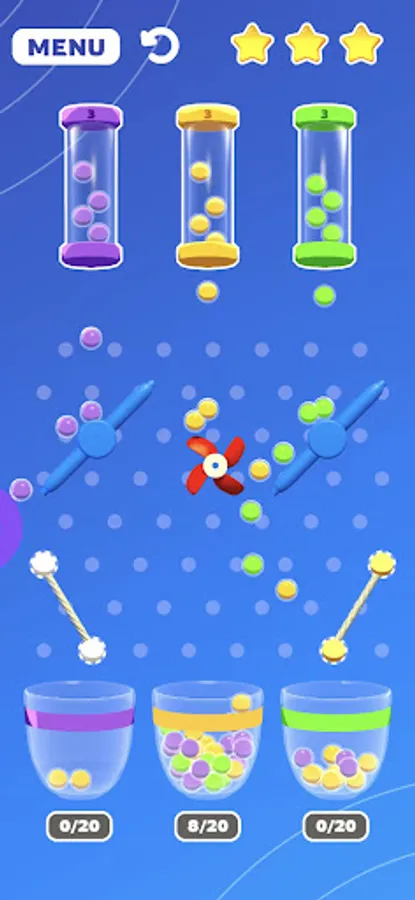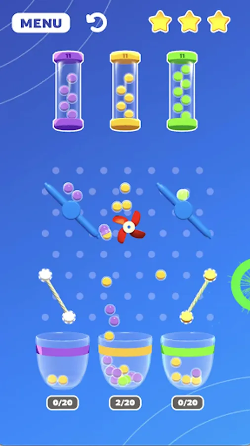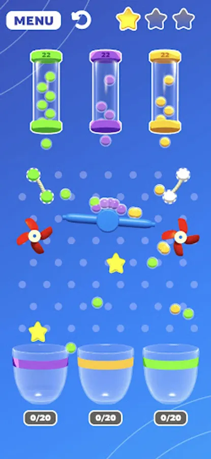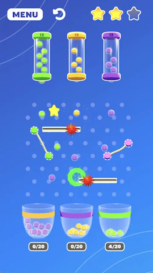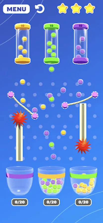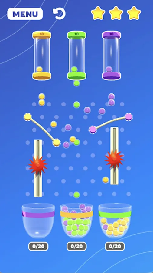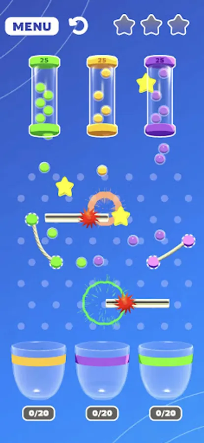 Rubber Bouncy Color Balls is a fun and challenging game where the objective is to toss colorful balls into designated baskets using rubber cords. The game consists of several baskets of varying sizes and colors, each with a corresponding point value.
