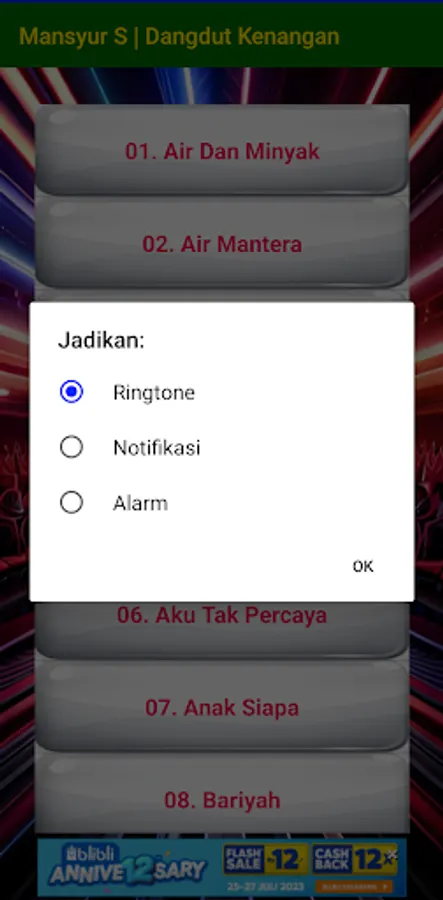 * Ringtone. Semua Lagu dapat dijadikan Ringtone, Notifikasi, dan Alarm pada gadget android kita.