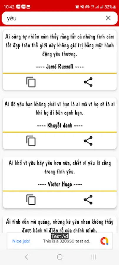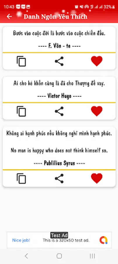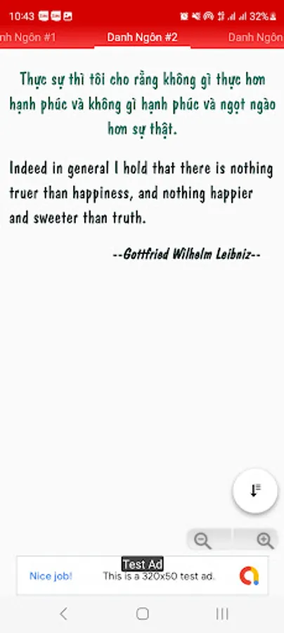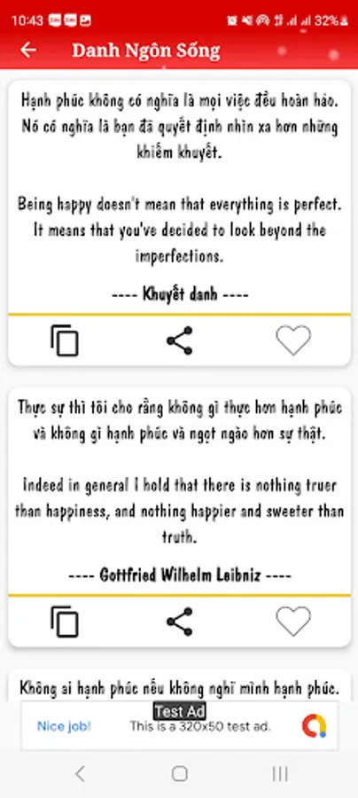 The Collection of Quotes and Life Lessons provides users with hundreds of quotes and life lessons categorized by topic, making it easy for users to search and select quotes. language that suits your needs. In addition, the application also provides a feature to share quotes and life lessons on social networks, allowing users to share their inspiration and intelligence with the world.