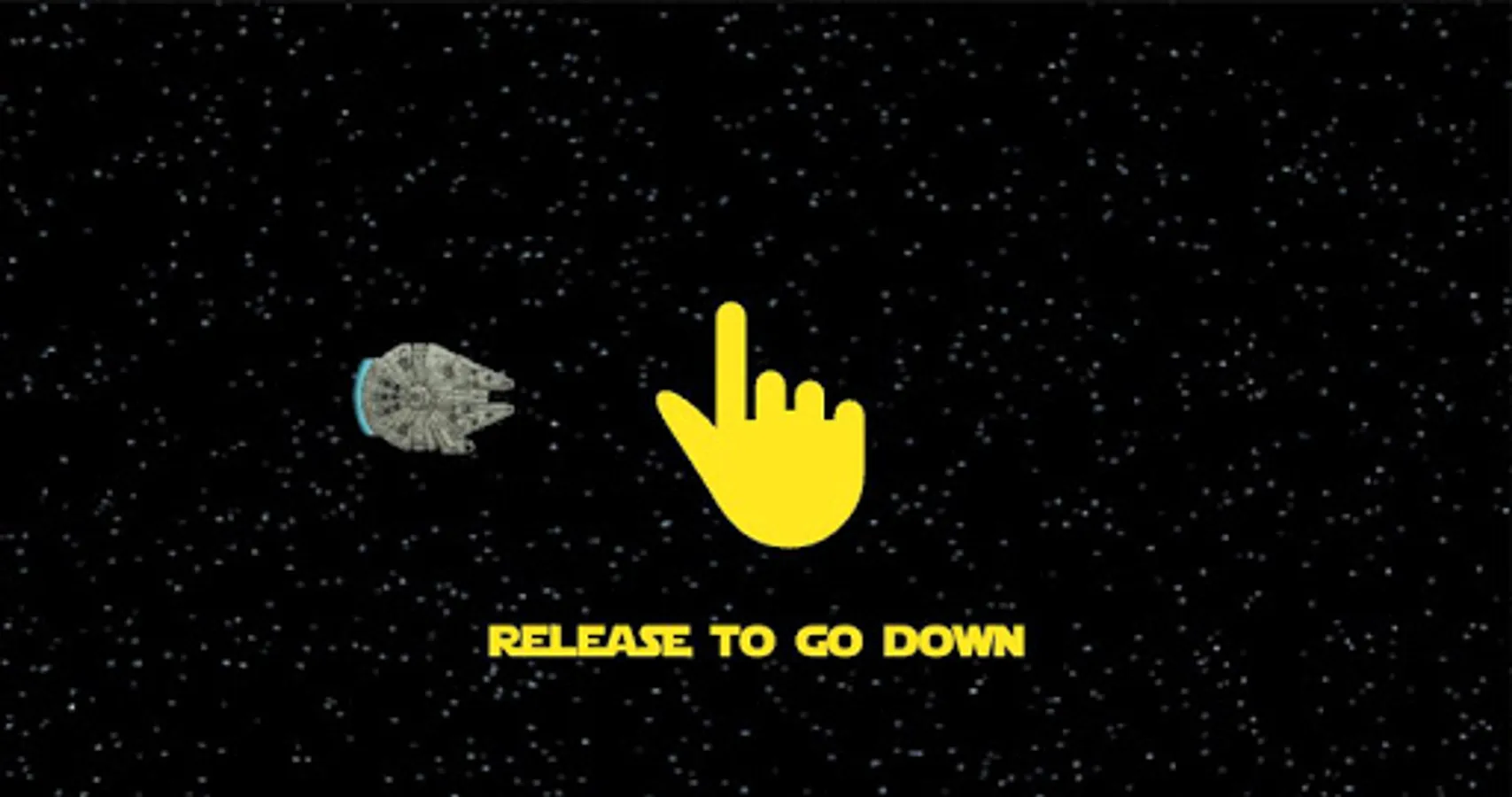 Away with your millennium falcon passing between the gaps left by the Star Destroyers of the Empire