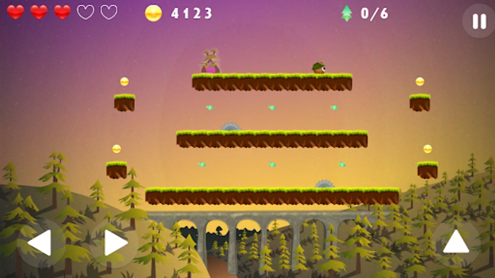 Your task will be jump over thorns or saws and get to the pack of tree seeds.