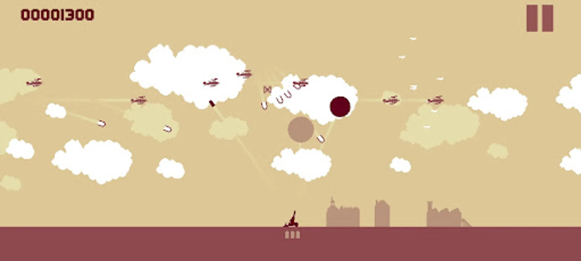 Arcade game where you play as air defence gun system in a occupation of a town, your task is eliminating enemy bombs and airplanes and enduring attack as much you can. If you start losing your buildings the enemy bombs will faster and will be dropped more frequently, if you lose your gun system of all of your buildings, game is over.