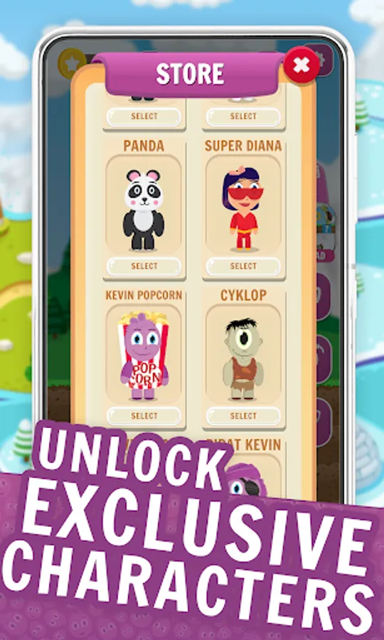 Kevin Runner is an endless running mobile game where the Player is Kevin or a character of your choice. The hero is on his adventure and has to overcome difficulties in an endless rush. As you run, grab gold coins and slimes while avoiding enemies and traps. The collected slime will be useful for destroying obstacles and defeating enemies. Kevin's world of adventures is full of dangers, from spiders 🕷, prickly hedgehogs 🦔 and fast birds 🐦 to hungry plants 🌺.