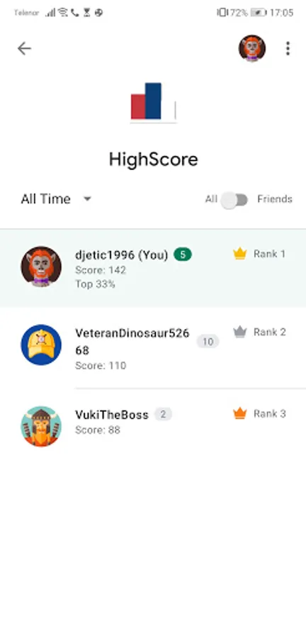 - Na svakih pet zaredom tačnih odgovora, 5 bonus sekundi