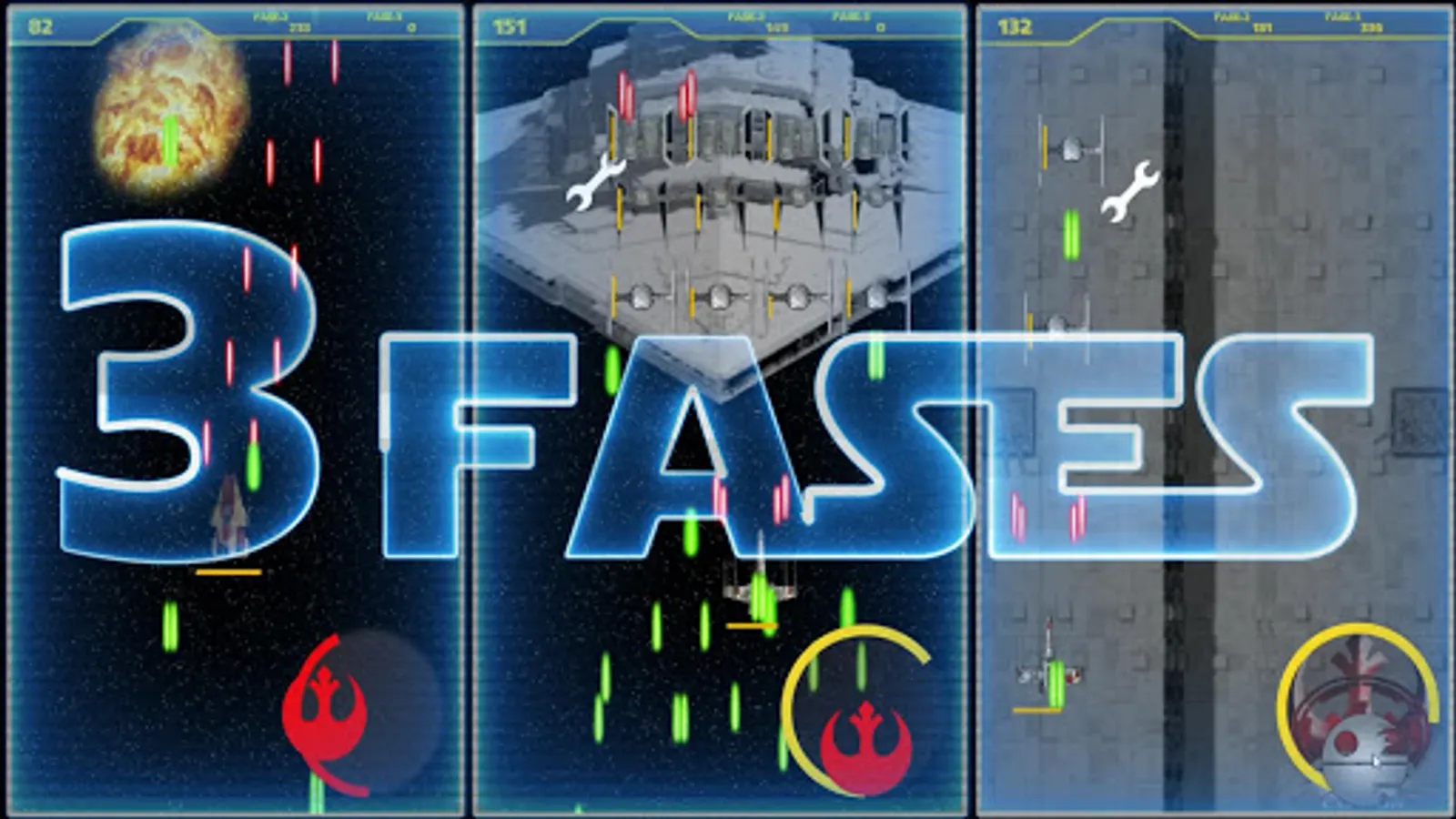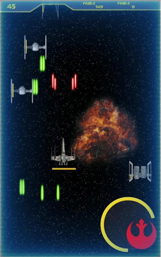 You will dive aboard one of the three rebel ships to defeat the empire and destroy the Death Star through 3 phases followed in which your skill needed to complete each stage and finish reaching the finals