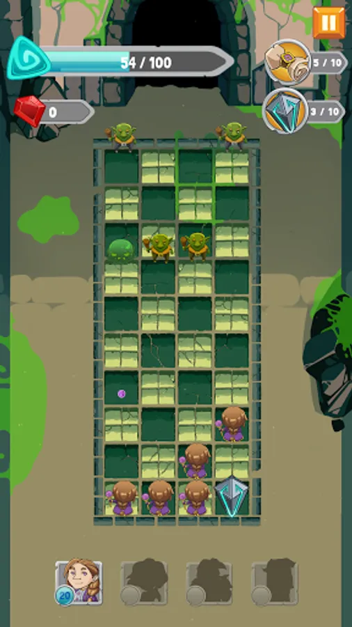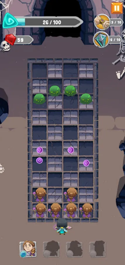 Strategize the placement of your Mages to defeat the oncoming enemies. Enemies defeated will have a chance to drop loot. Collect the loot for use in purchasing consumables.