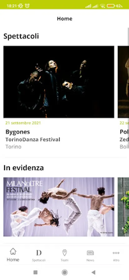 The application easy to use and immediate display will be animated by a spirit of fascination user. Will arouse curiosity, entice the user to explore the performing arts, create a movement of opinion on every single event.