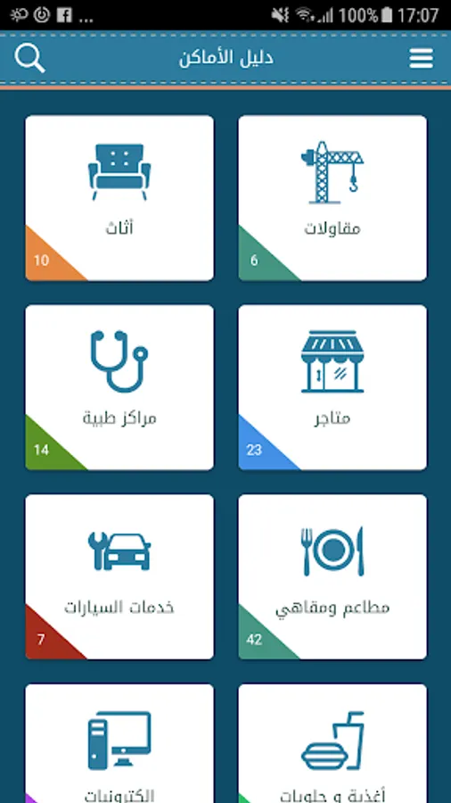 It includes a database of different facilities: shops-restaurants and cafes-Medical Centers Application-shows Othat- Food and Chocolates- Electronics- services Cars- other companies Construction- and covers all cities and regions of Saudi Arabia.