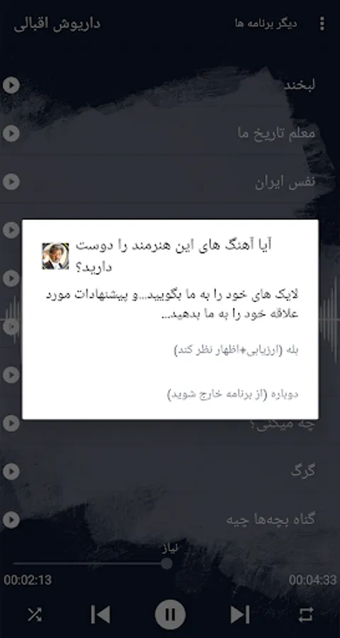 • The best songs of the artist Dariush Iqbali in one program and without a network. We hope you like it.