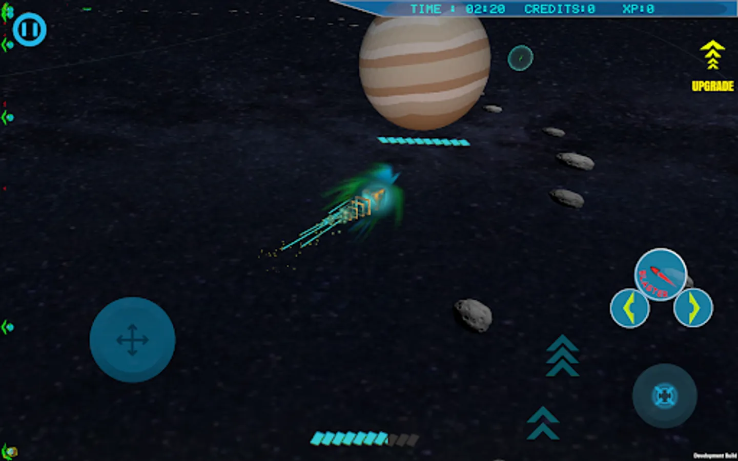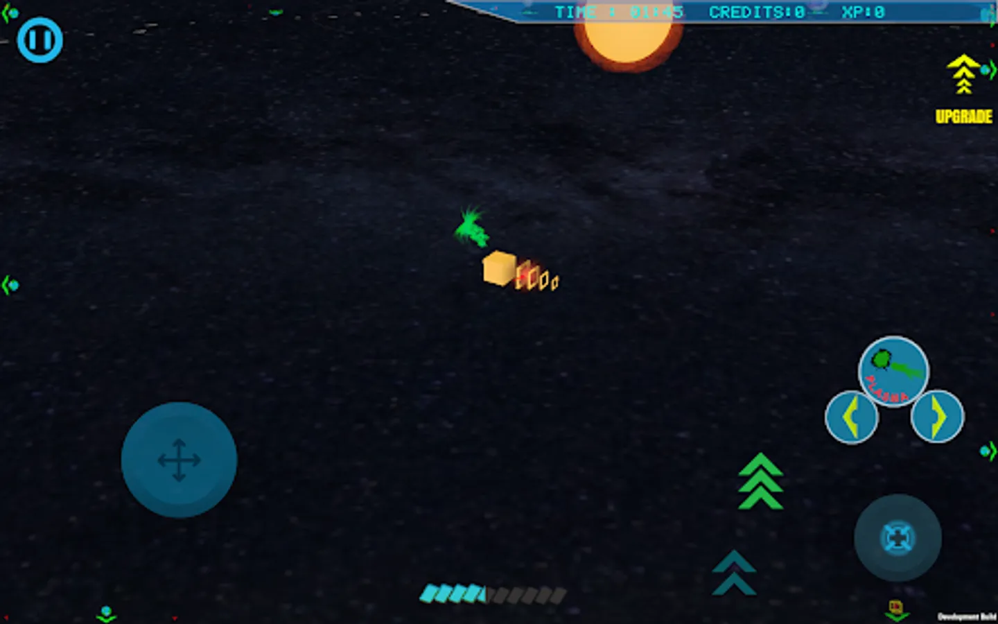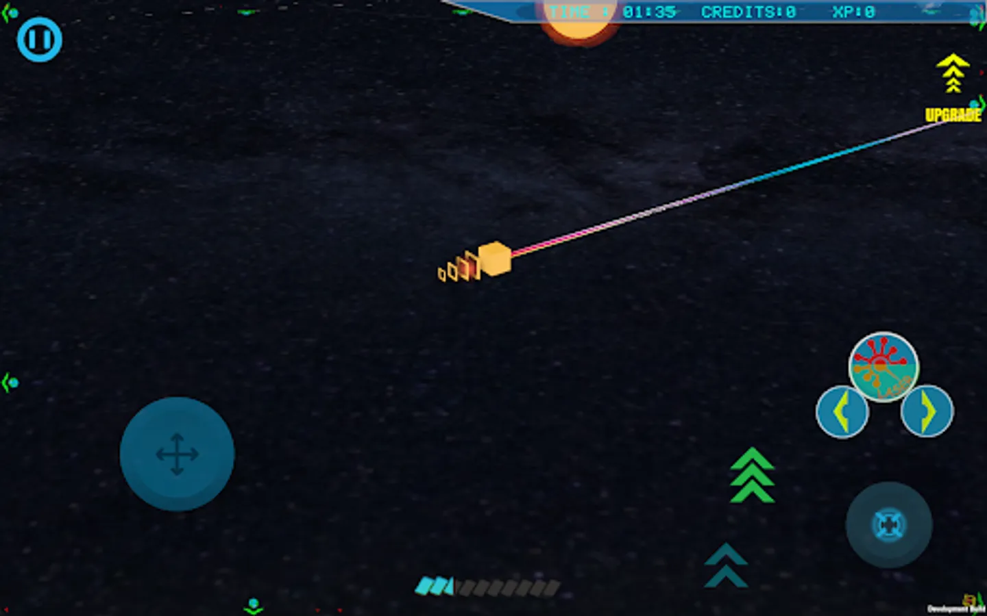 There is an eternal war in the galaxy over which shape is perfect. Prove your superiority over other geometric figures. To gain an advantage over your enemies, you must destroy their spaceships and even entire planets. Your ship's upgrade system and the ability to recruit allies will help you with this. But you must act wisely because your budget is limited.