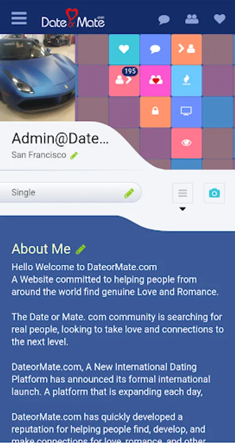 We are very excited to see how DateorMate.com helps people connect each day, Our platform has been created to prioritize the user experience and to make finding Dates, Love, and Romance easier than ever before. A host of features on the platform make this possible, available 100% free For everyone.