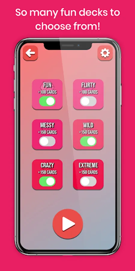 • Our 4 premium decks ('MESSY', 'WILD', 'CRAZY', & 'EXTREME') each add an additional 150+ unique cards that gradually increase in intensity depending on which deck you choose!