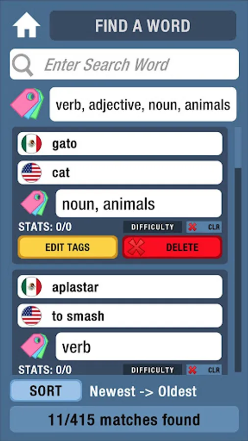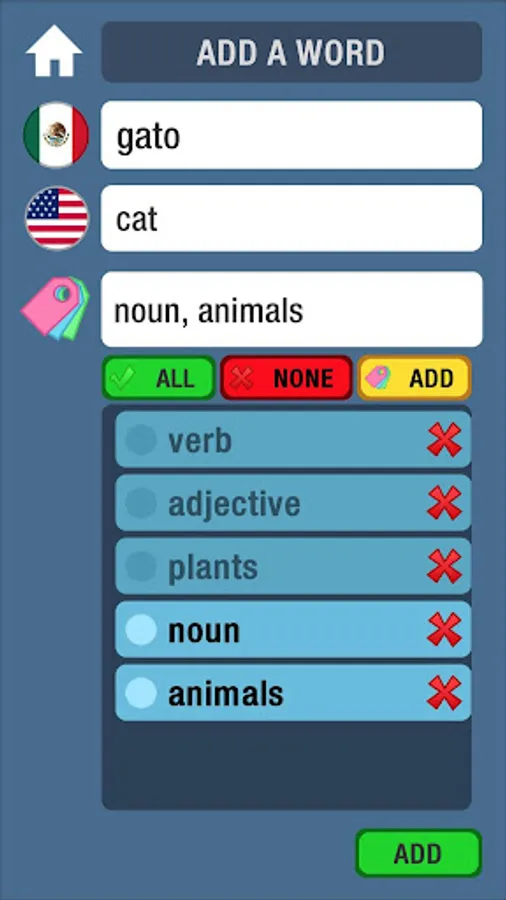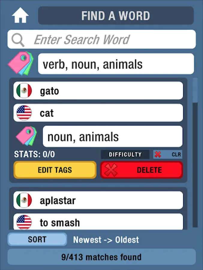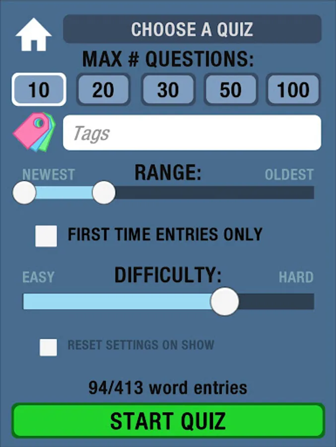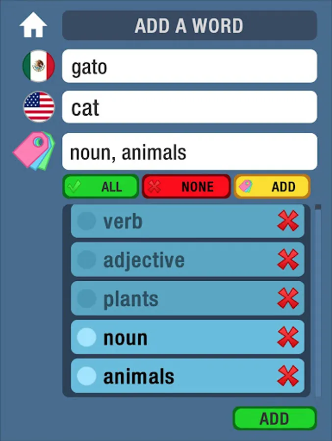 Introducing an app for testing yourself on language vocabulary. First, select your two languages. Then enter a list of words and translations, and create your own category tags. Finally, customize quizzes by number of questions, categories to include, difficulty, and newness.