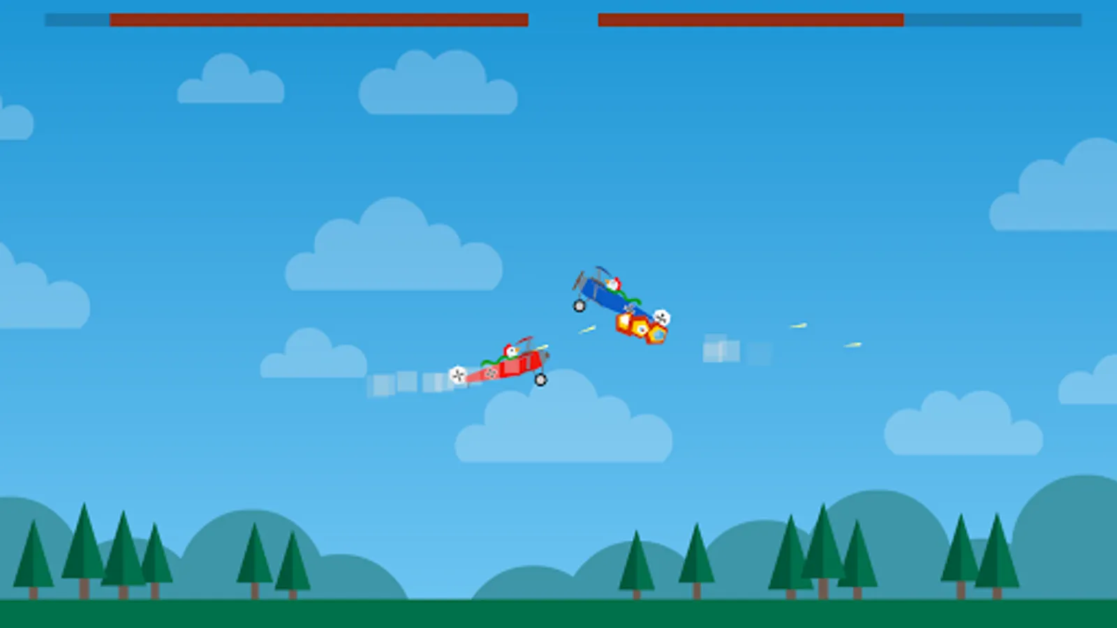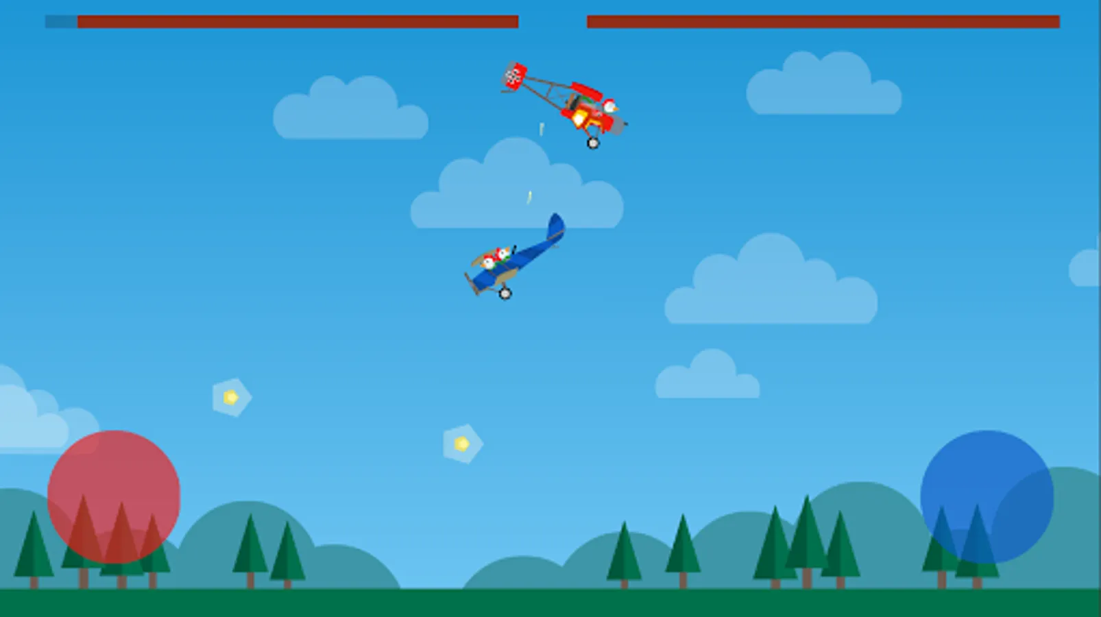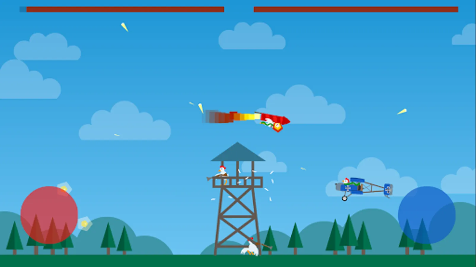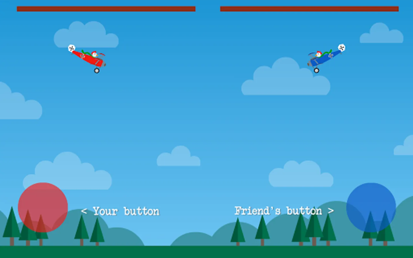 Challenge a friend to a duel in the skies! Will you hold your nerve & fly directly at your opponent, or chicken out and swerve away? Simple 2-player game played locally with a friend. Control your own WW1 Fokker biplane. A game lasts 5 rounds, & whichever Fokker survives, wins!