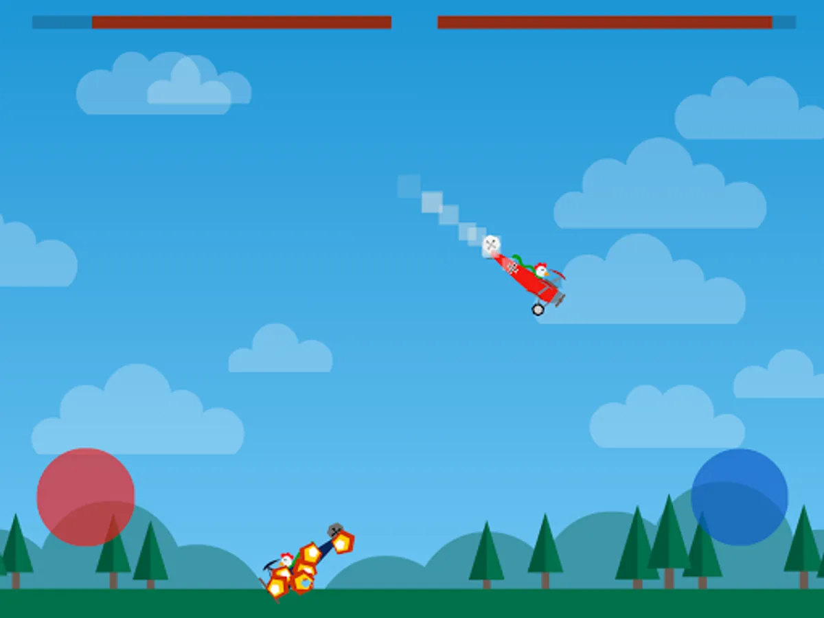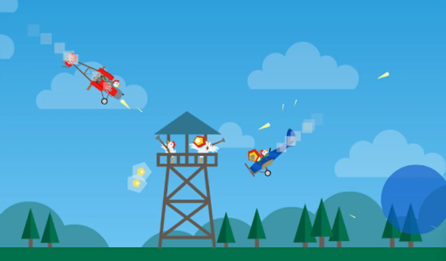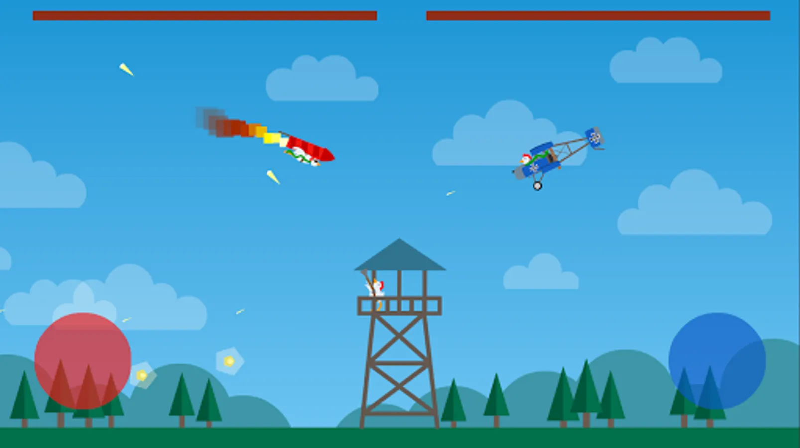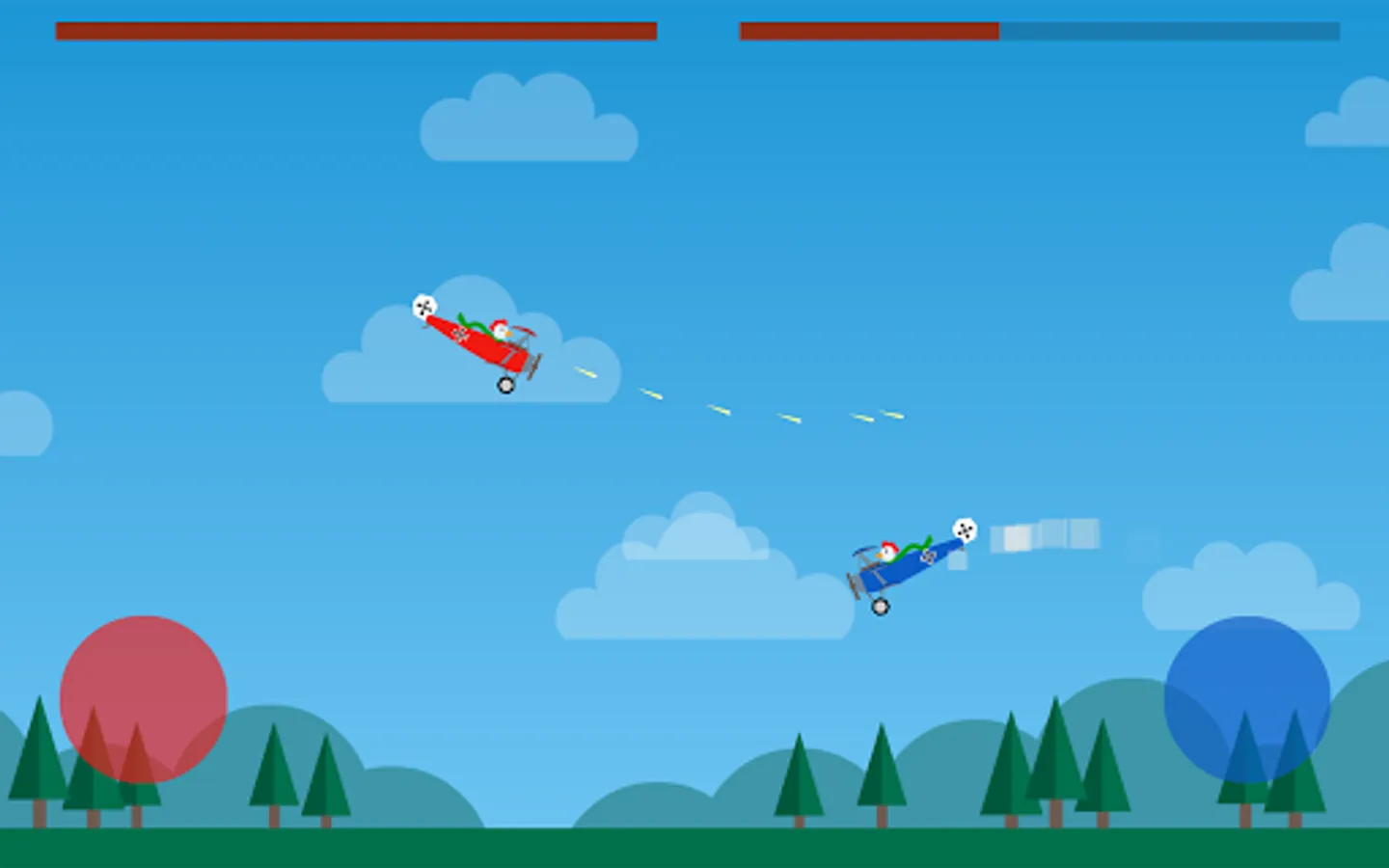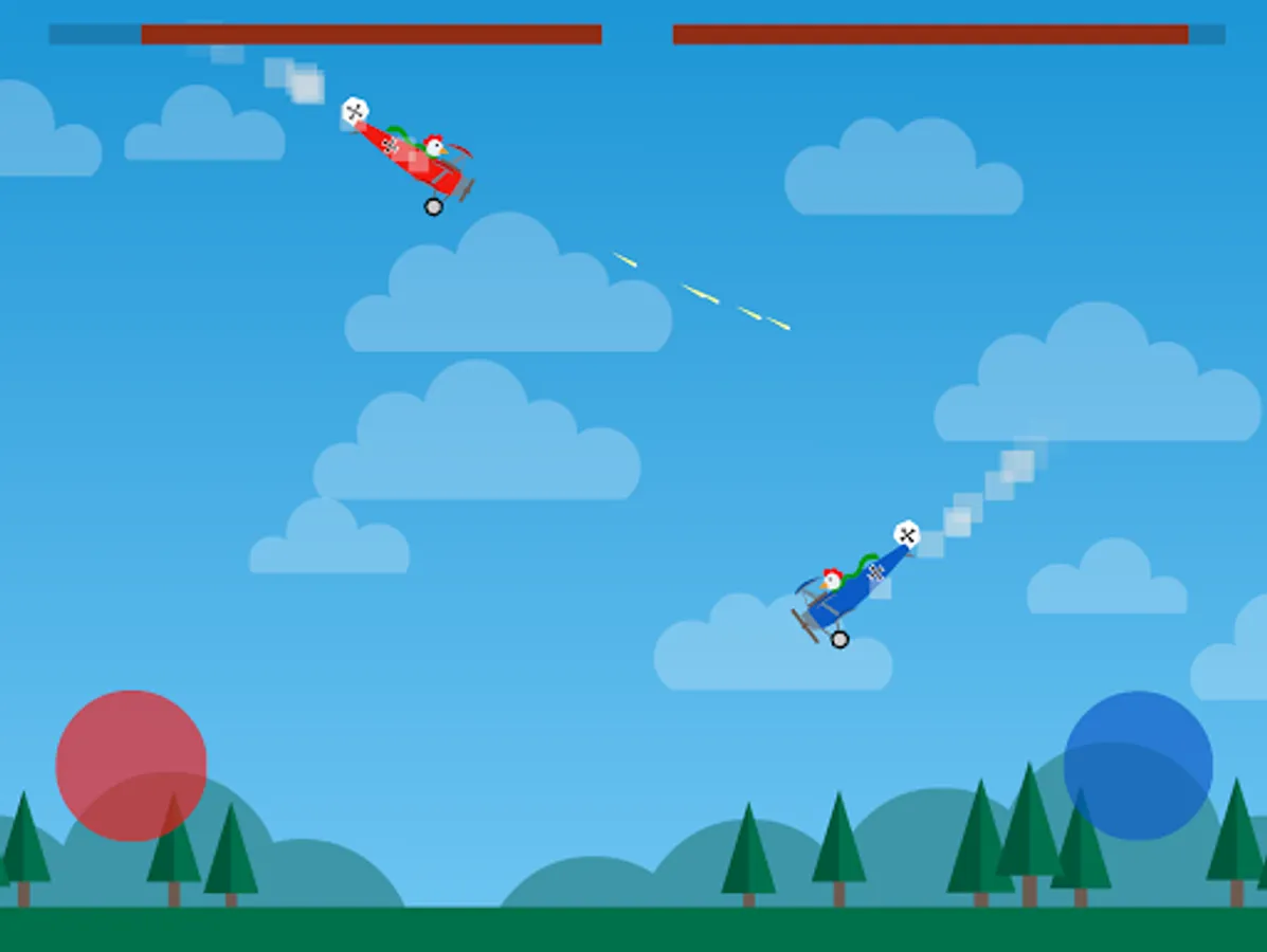 Challenge a friend to a duel in the skies! Will you hold your nerve & fly directly at your opponent, or chicken out and swerve away? Simple 2-player game played locally with a friend. Control your own WW1 Fokker biplane. A game lasts 5 rounds, & whichever Fokker survives, wins!
