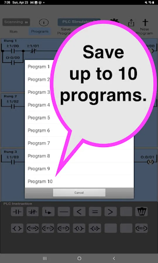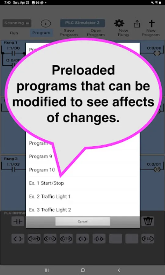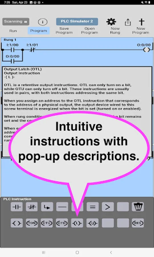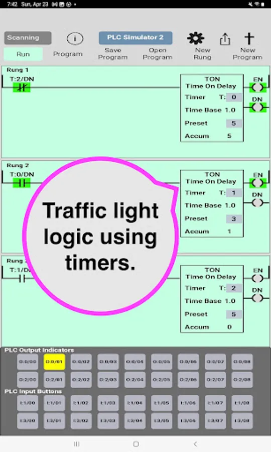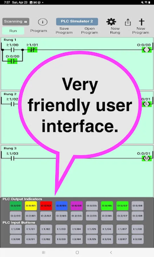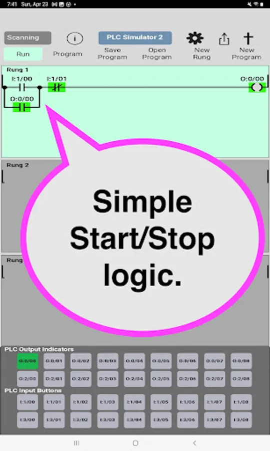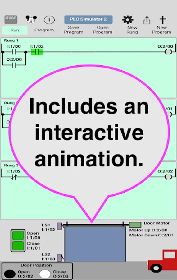 This app allows PLC students (Electricians, apprentices and college students) to test their small homework assignments using their phone and explore basic PLC programming. It has input instructions, outputs, timers, counters, latches, unlatches and compare blocks, each rung is FULLY configurable with 6 instruction long and 4 instructions deep.