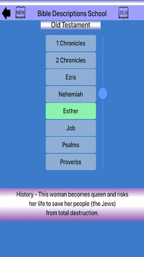 in order) and brief descriptions of each book in both the Old and New Testament,