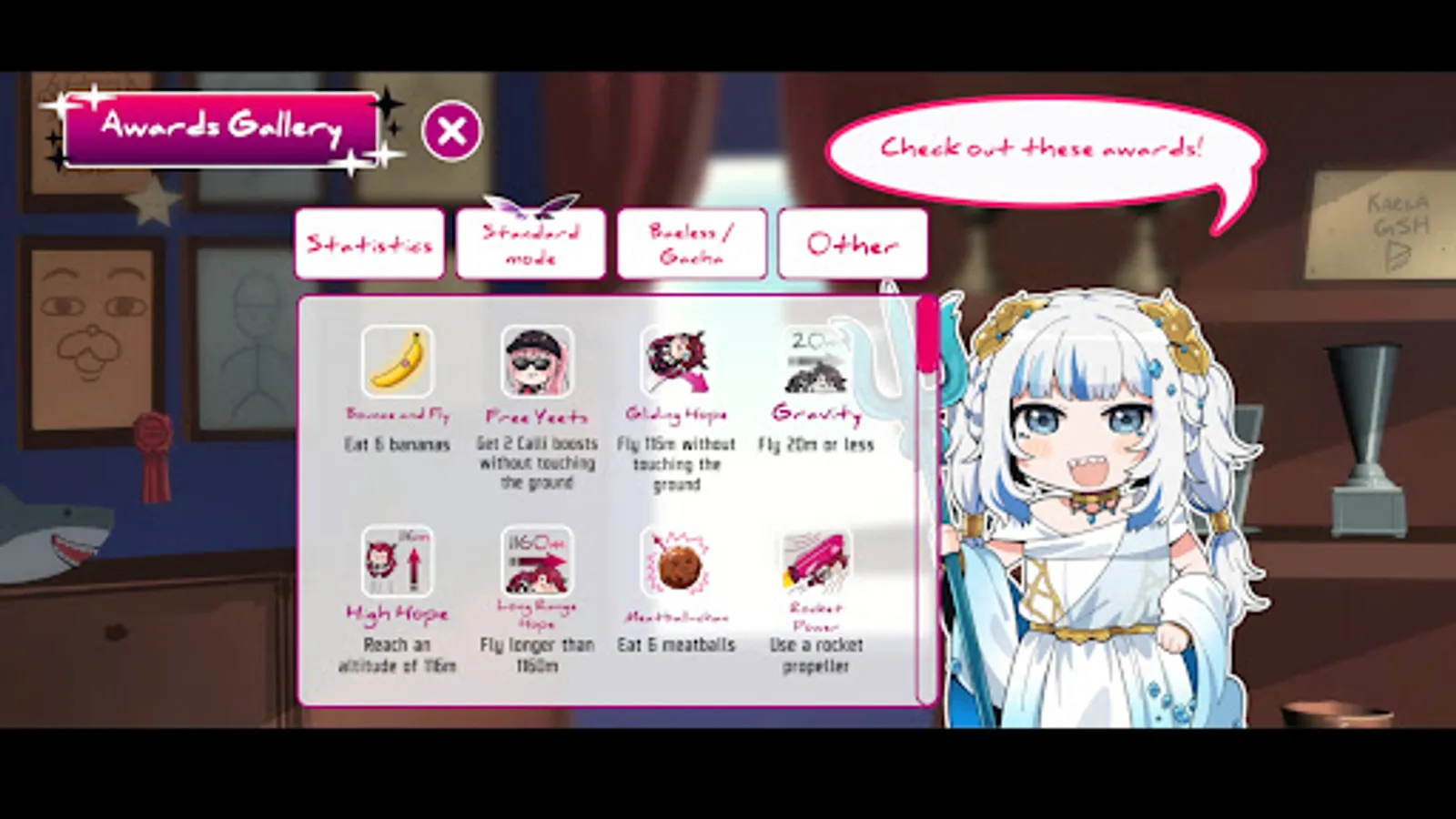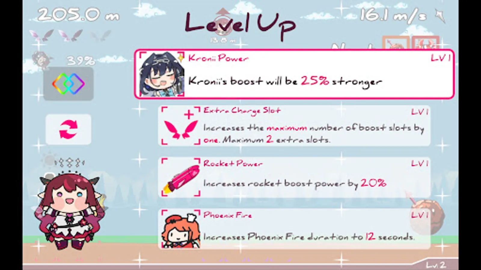 Choose your launch angle and power, hit boosters to propel you further ahead, buy upgrades as IRyS levels up during the run, and avoid hitting Bae at all costs!