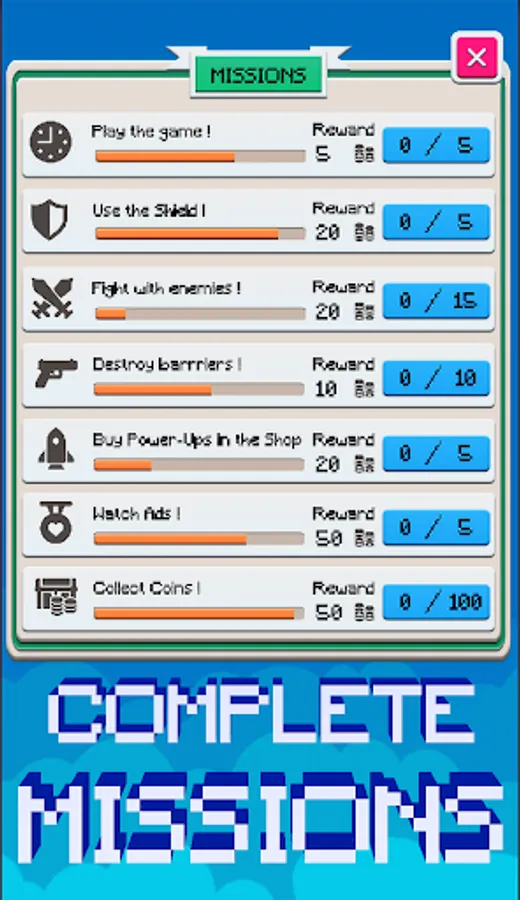 Complete missions, unlock achievements and purchase power-ups to become invincible.