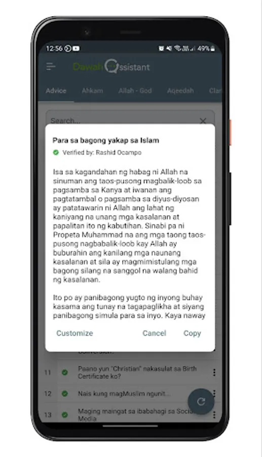 Contains questions and answers by non -Muslims regarding Islam. The answers to the questions in this app are the result of JSD's 5 years of online research that he has compiled. The answers and questions here can be from self -answer and others are from collected questions and answers by other scholars online. It may be that the answer that proceeds needs adjustment and correction. When you see a Verified label below the title it means it has gone through correction and correction. But still use the app with your own caution. Any concerns regarding this app will be reported to us. Baarakallahu feekum.