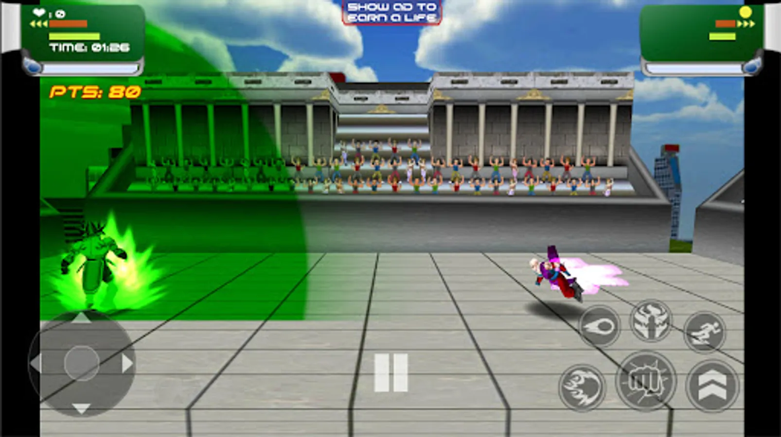 Adventure Mode: Choose a warrior to defeat a lot of enemies in dangerous missions (beat em up game mixed with platforms) and use your energy to perform amazing super powers. But be careful, becouse bosses awaiting to destroy you ...