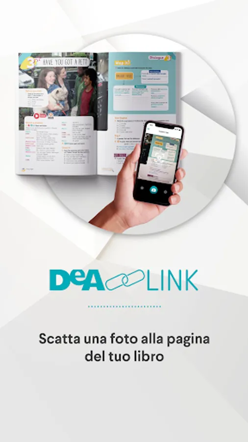 If your D Scuola book is connected to Dealink, download the app and use your device to scan active sections on the pages of the book (all active sections are listed in the index or in the introduction).