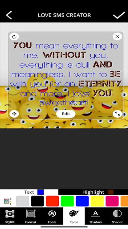 In conclusion, the love sms creator app is the perfect way to convey your love and appreciation to the important people in your life. It offers a wide range of pre-written messages that you can personalize or create from scratch. With this app, expressing your love and gratitude has never been more accessible, enjoyable, and heartfelt.