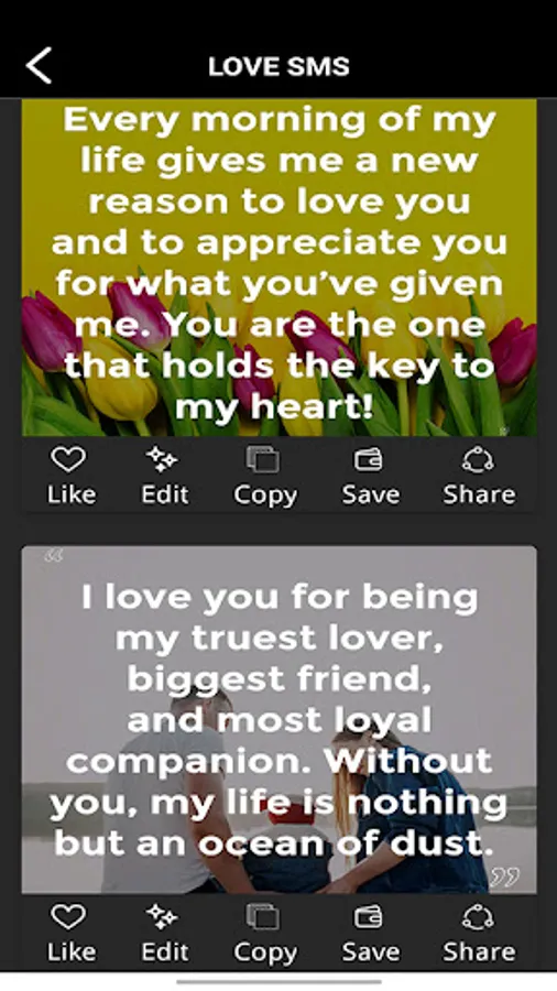 With the love sms creator app, users can select messages based on different themes, occasions, or emotions, such as birthdays, anniversaries, Valentine's Day, thank you notes, apologies, and more. The app's messages range from sweet and romantic to humorous and playful, ensuring that users can find a message that perfectly fits their intended tone.