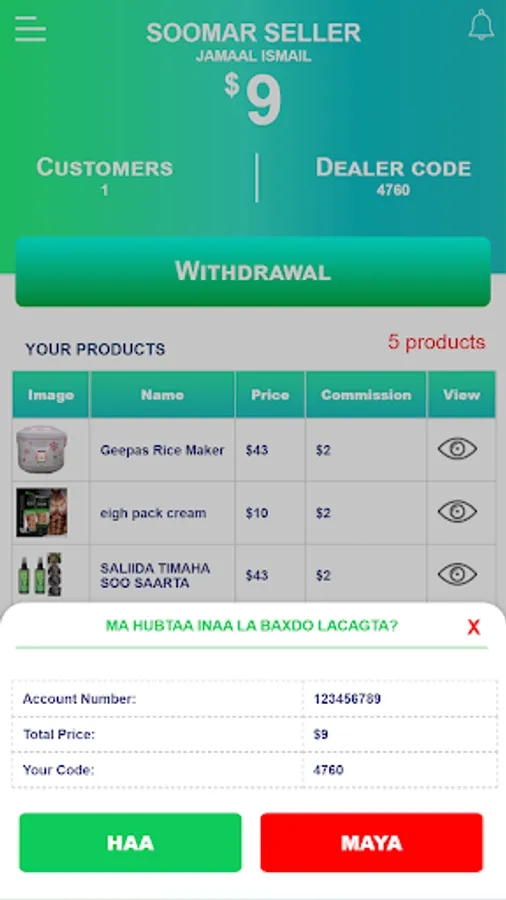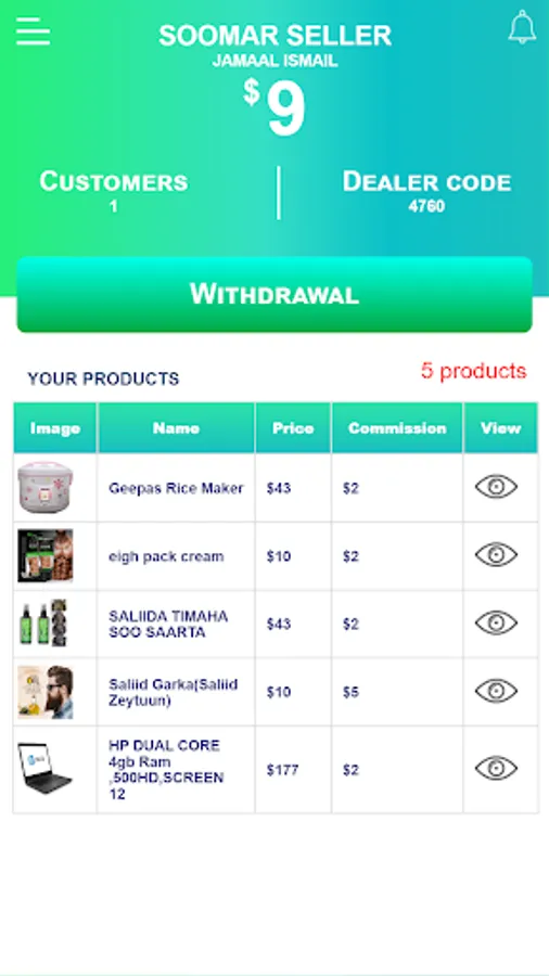 Soomar seller waa appka Dealers kaliya ay isticmaali karaan waxayna kala socon karaan macaamiishooda iyo lacaga hooda waxayna kala bixin karaan lacagta