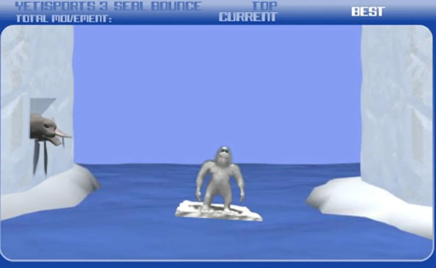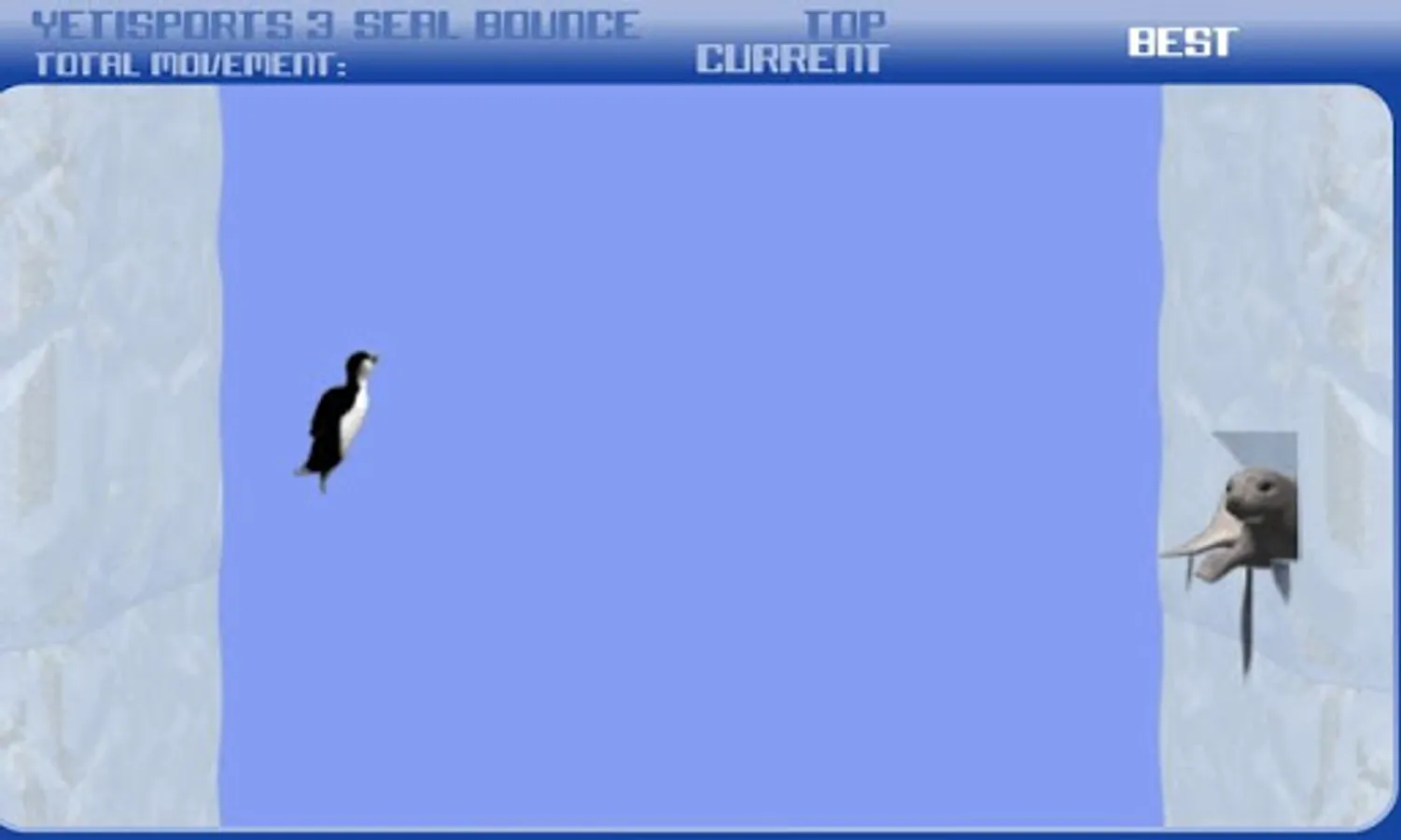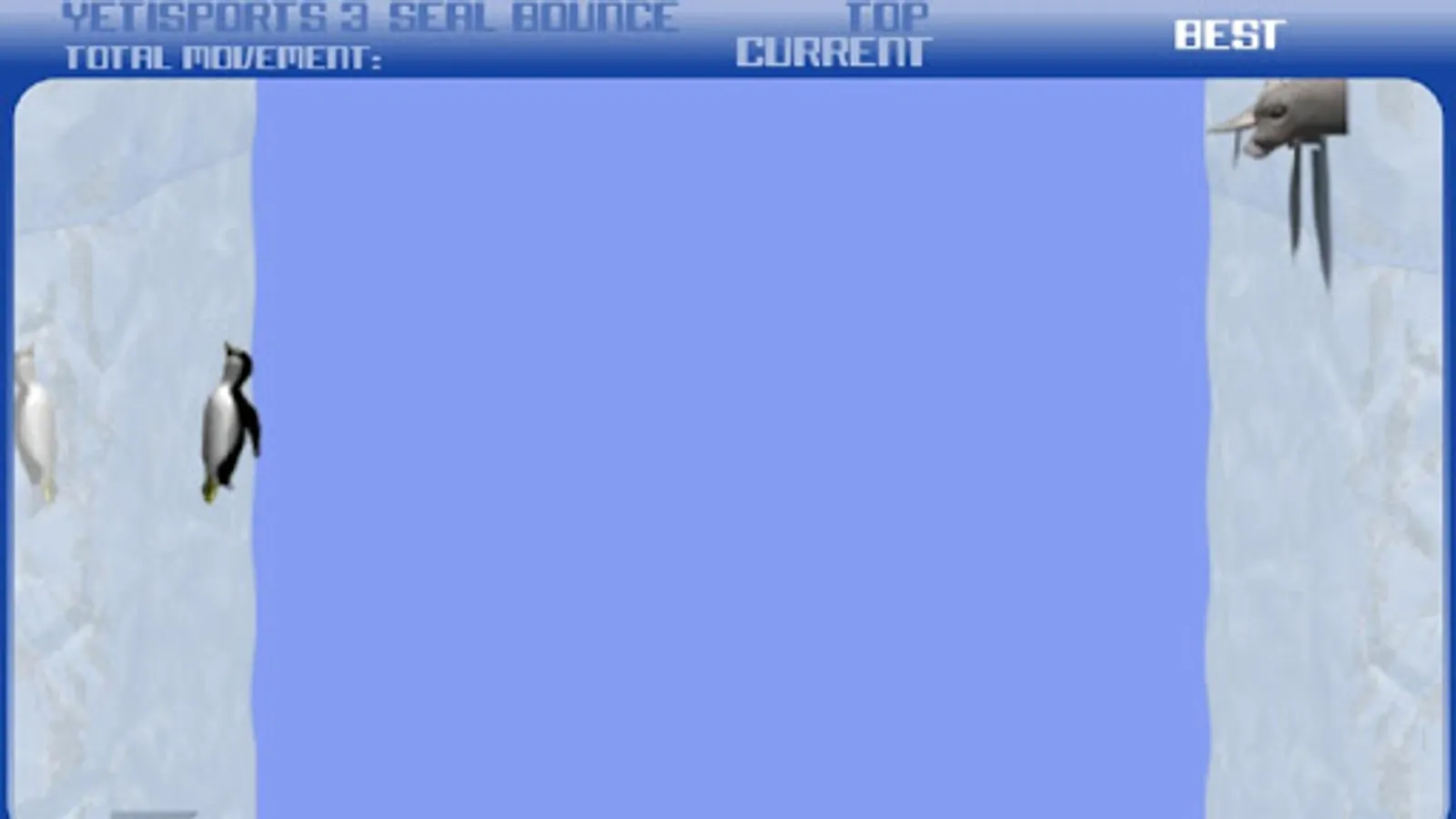 Now, in Yeti Sports 3 the Yeti will be on a small iceberg and he’ll launch his friends the penguins just like an olympic athlete throwing the hammer. They’ll spin high up in the air between two walls of ice and the sea lions will help them even getting higher if one of the walls gets touched.