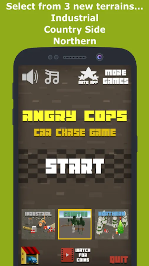 Angry Cops : Car Chase game is awesome car chase game. Select the environment you want to drive : northern for winter, country or industrial terrains and just touch start.