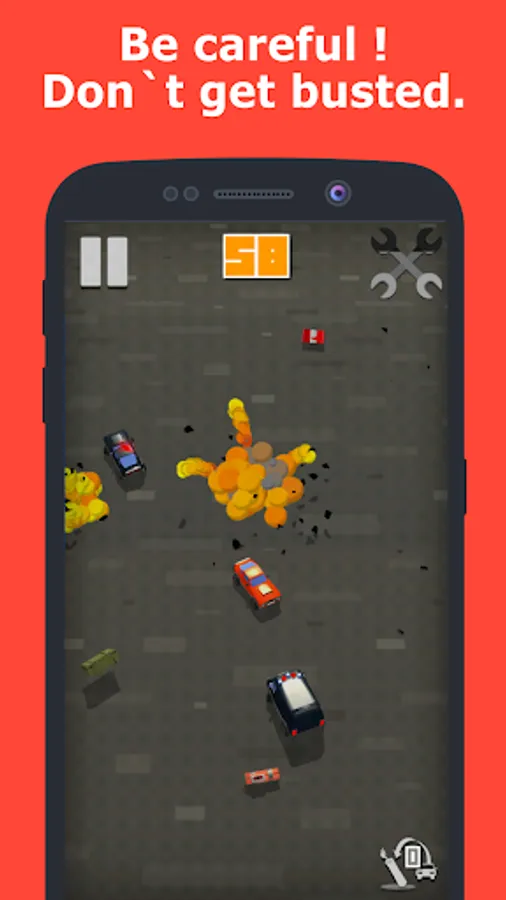 Avoid police cars and don’t get busted. Be careful do not crash! If you find a wrench collect it to repair your car. Collet money to unlock new cars from shop. There are various cars which has high endurance and speed. Mind the obstacles and rocks. Angry Cops is an addictive car chase game. Police cars will drive you crazy. But don`t worry there is no roads limiting you, everywhere you drive is off-road.