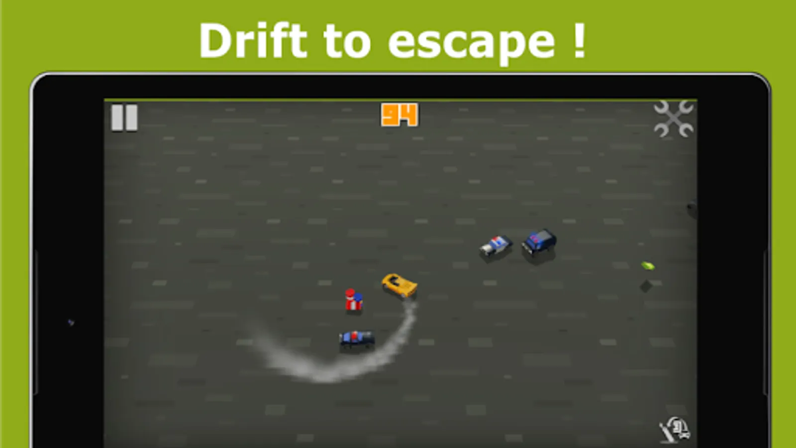 Drift around and collect money to increase your score. With money collected unlock faster, better drifting and more durable cars. But keep in mind there are also various types of police cars chasing you!