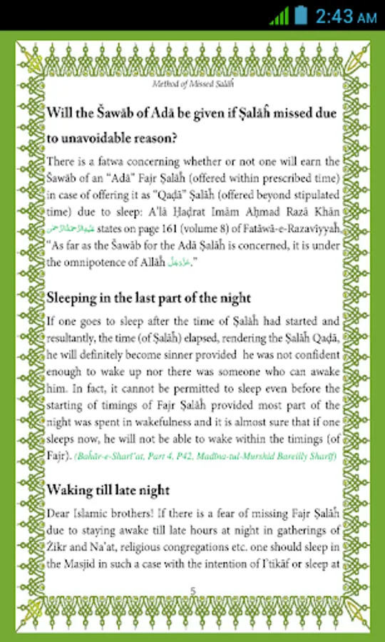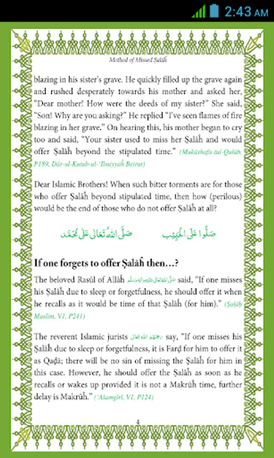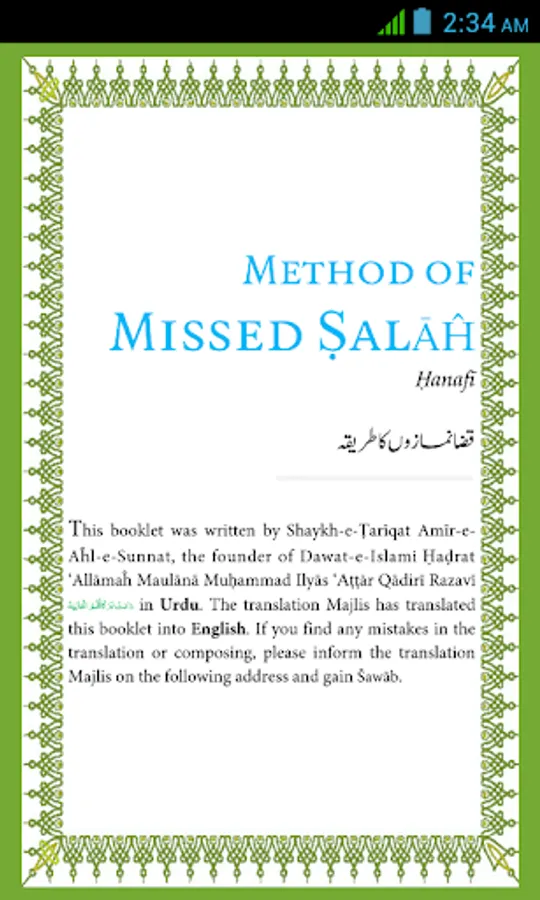Missed Salah Method is an Islamic App for Muslim brother and sisters. This app is based on Book "Missed Salah Method " written by DawateIslami Founder Sheikh e Tariqat Ameer e Ahle Sunnat Hazrat Allama Molana Abu Bilal Muhammad Ilyas Qadri Razavi.This Book Includes Superb Knowledge Of Topics Like Disaster for those who miss their Salah, Waking till late night, Offer Qada Salah as soon as possible And Many More