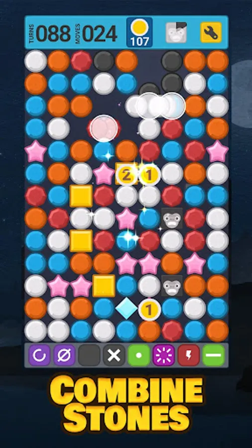 Match 3 Stones to merge them into more valuable Gems.