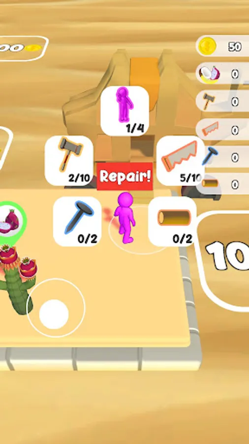 Collect materials, sell them to market for buying new stuffs. Upgrade your area, improve your equipment and be sure everyone is safe.