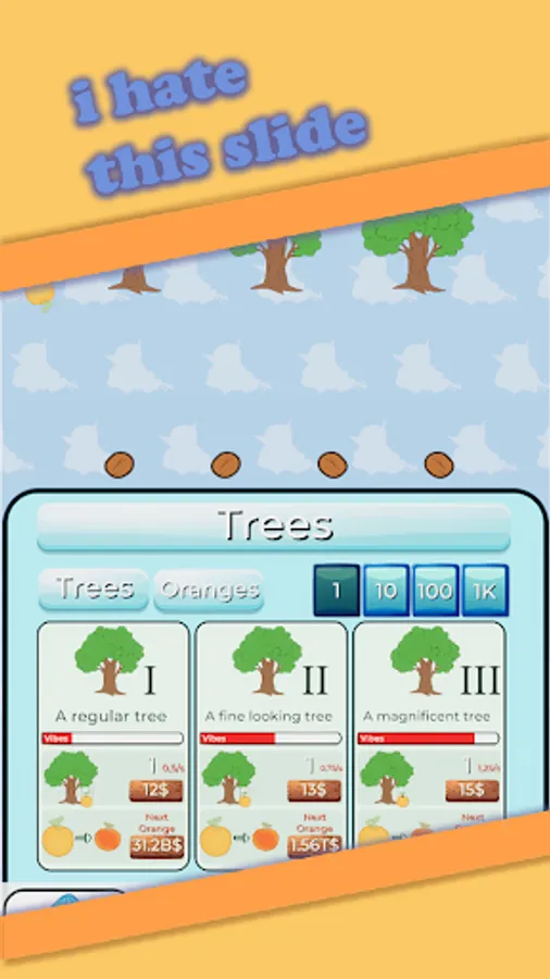Start with nothing but one simple orange tree, producing the most useless of orange scrumps and grow your orange empire to world leadership.