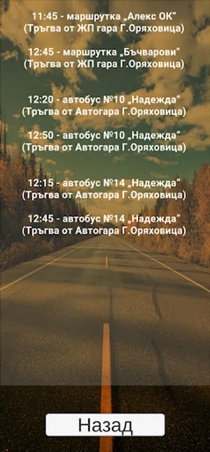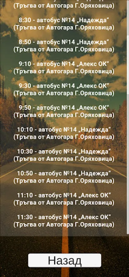 See the schedule of buses №10, №14 and the route between Gorna Oryahovitsa and Veliko Tarnovo.