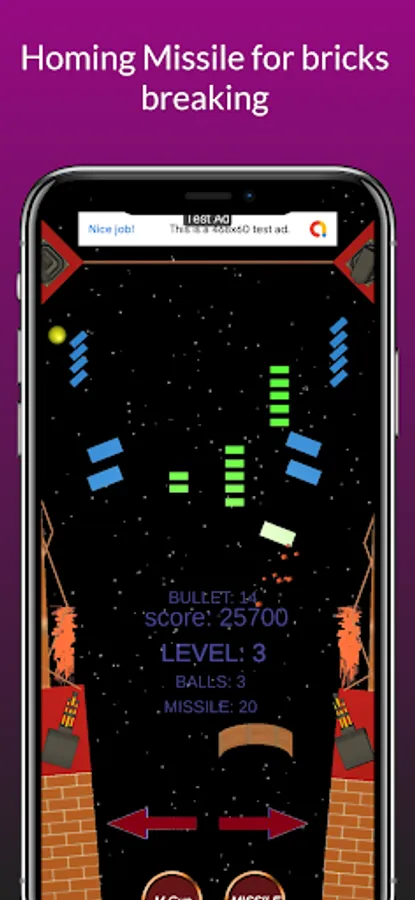 ▶ Homing Missile for bricks breaking (Auto detects the bricks, 20 Missiles/Stage)
