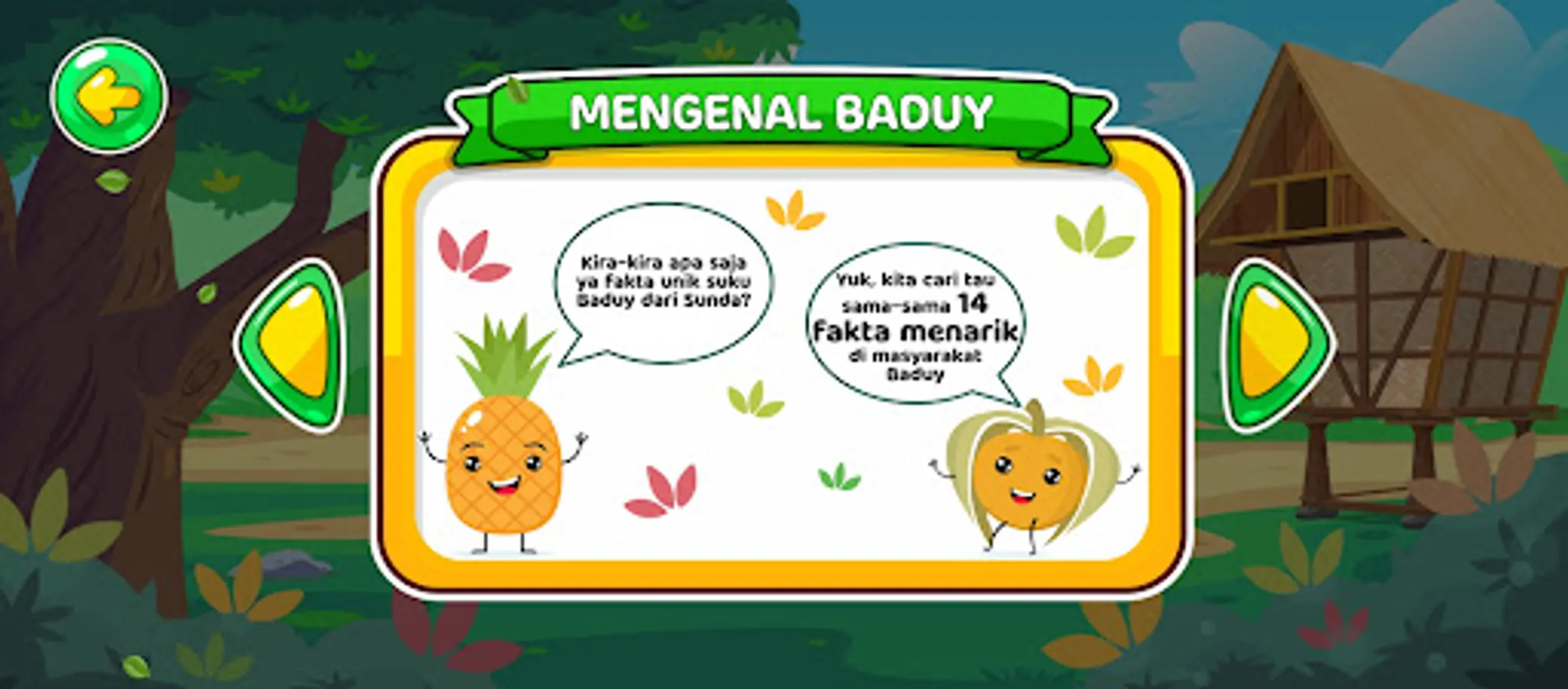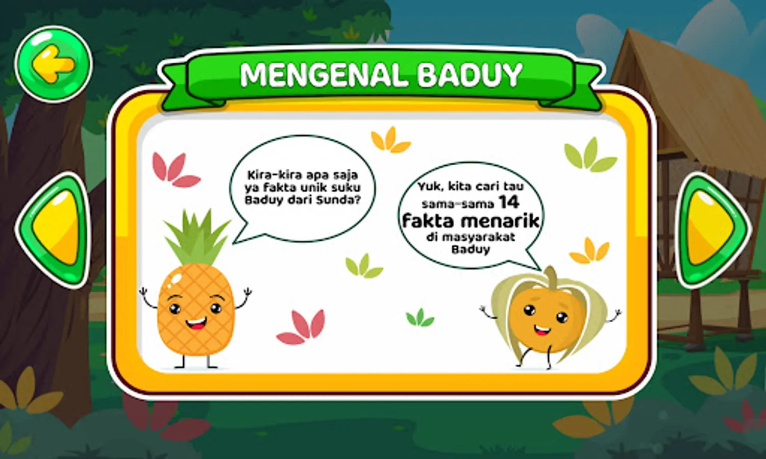 Bocil Baduy has two main menus, the learning menu and the play menu.
