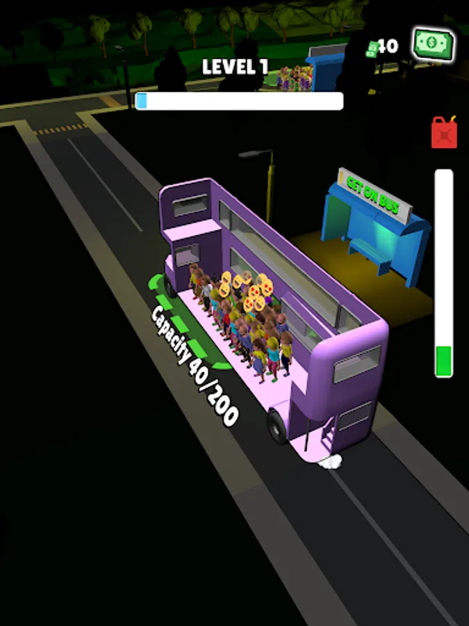 Upgrade your vehicles and take people to stations with long ways. Just tap and hold to move your bus with people! Fit passengers to the limit! Watch out of the obstacles in the night and daytime maps. Lets start to transportation!
