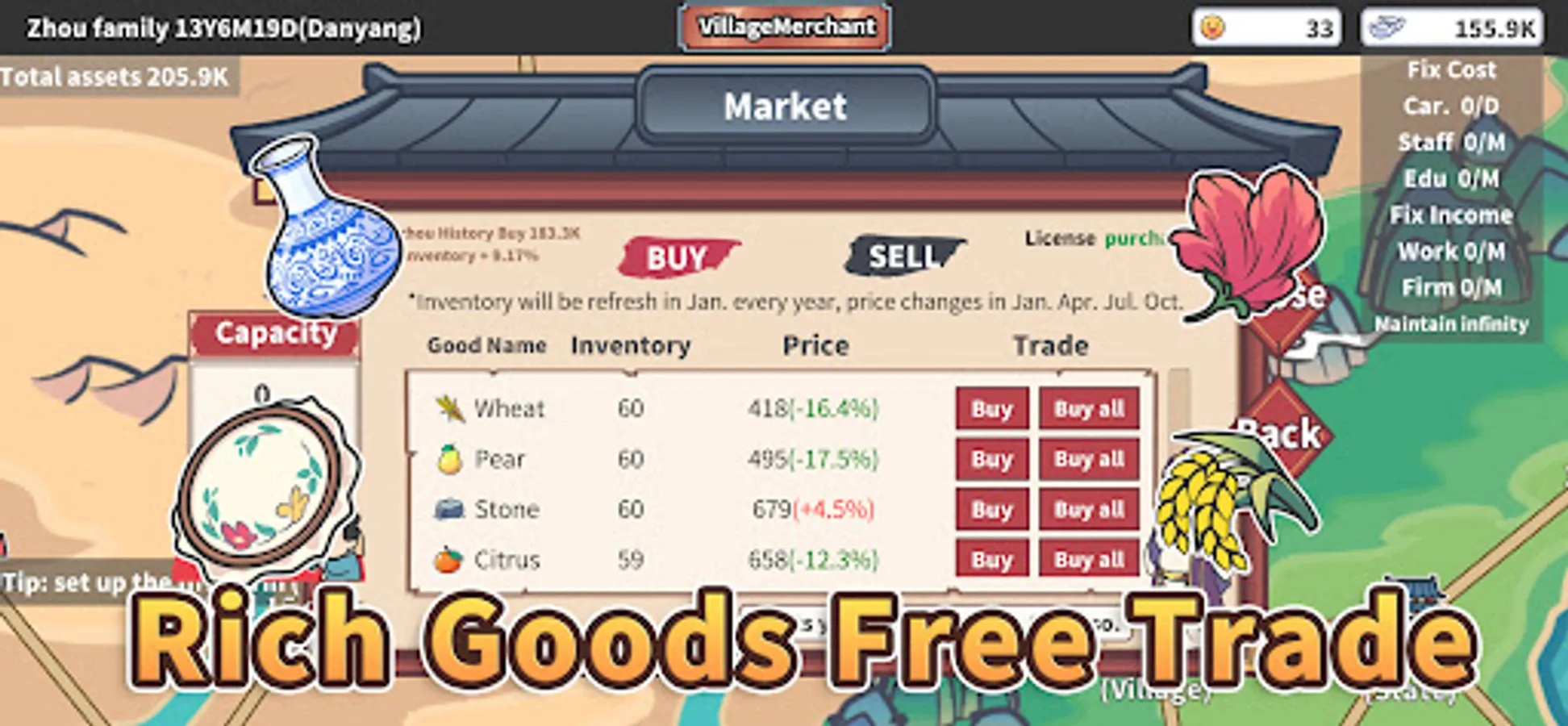 East Trade Tycoon is a trading simulator game.In the game,you can from zero to hero.By trading markets, build a business,earn money,level up, investing accurately, and manage family to become a trading tycoon.