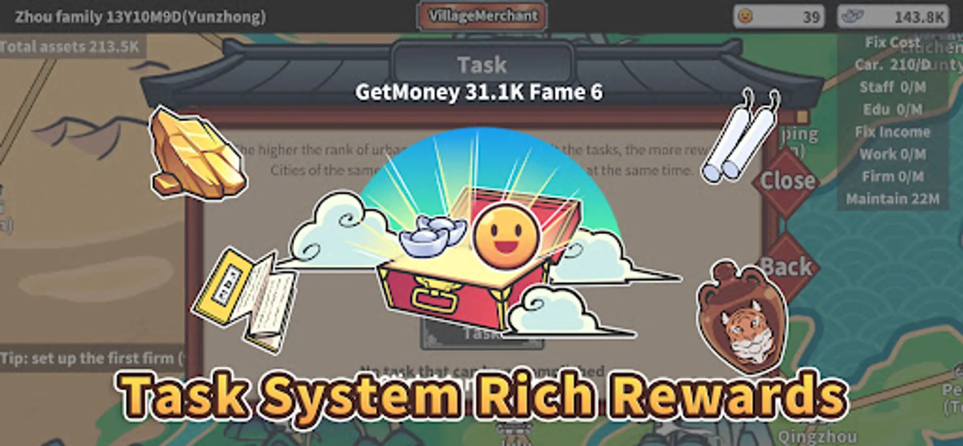 The ultimate goal of the game is to be the richest man, to be the biggest businessman in every city, and to have a strong family so that our career can be passed on forever.