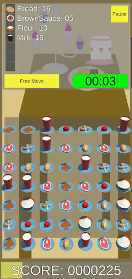 Cuisine is a Match-3 Puzzle game where you move whole lines of ingredients to form matches. Challenge yourself with six different levels based around six different recipes! The faster you beat the level, the higher your score will be.