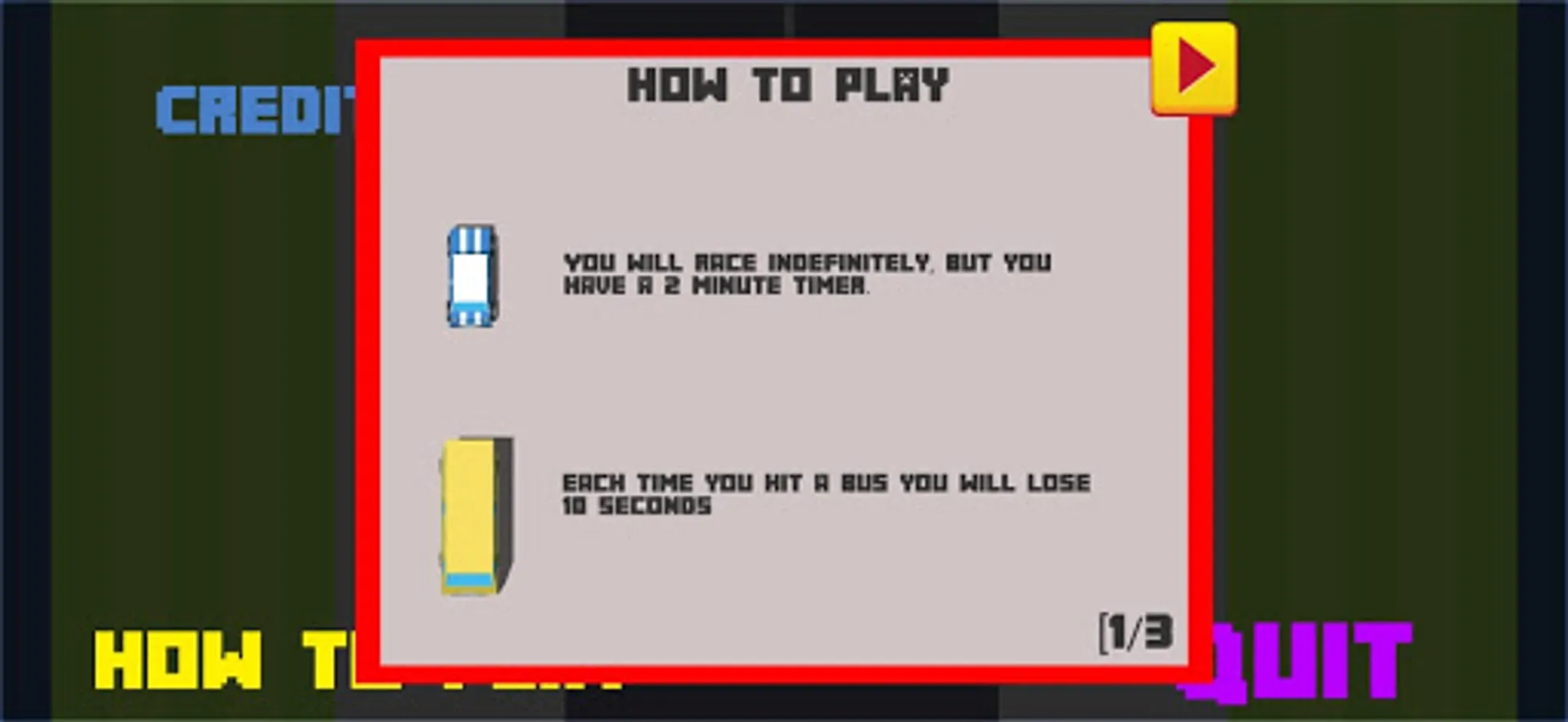 Try to survive as long as you can, is just that! Don't hit buses, but get timers, every 30 seconds the speed will increase by itself. Hit the 'How to play' to understand the game.